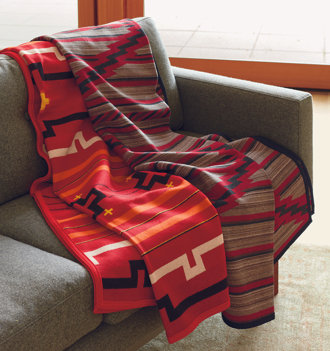 ただ単に商品を作るのではなく、各部族の模様や色使い、文化背景をリスペクトしたデザインを実現したことで、先住民族の間でも高い信頼を得るようになります。こうした背景から、ペンドルトンのブランケットは「贈り物」や「家宝」として扱われることも少なくありません。
