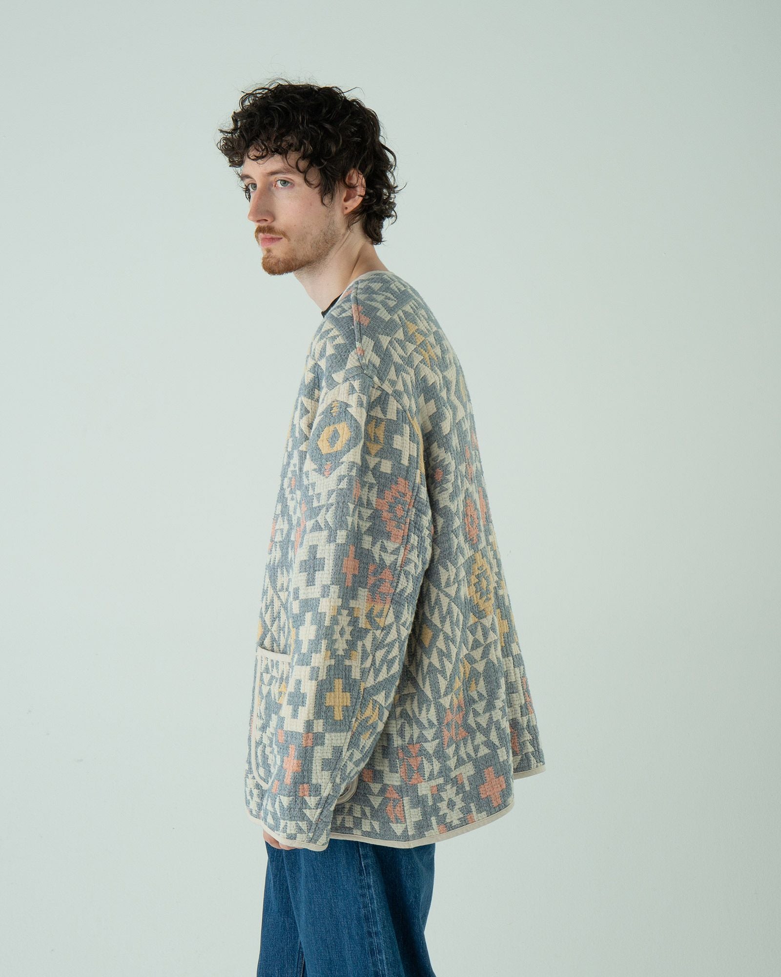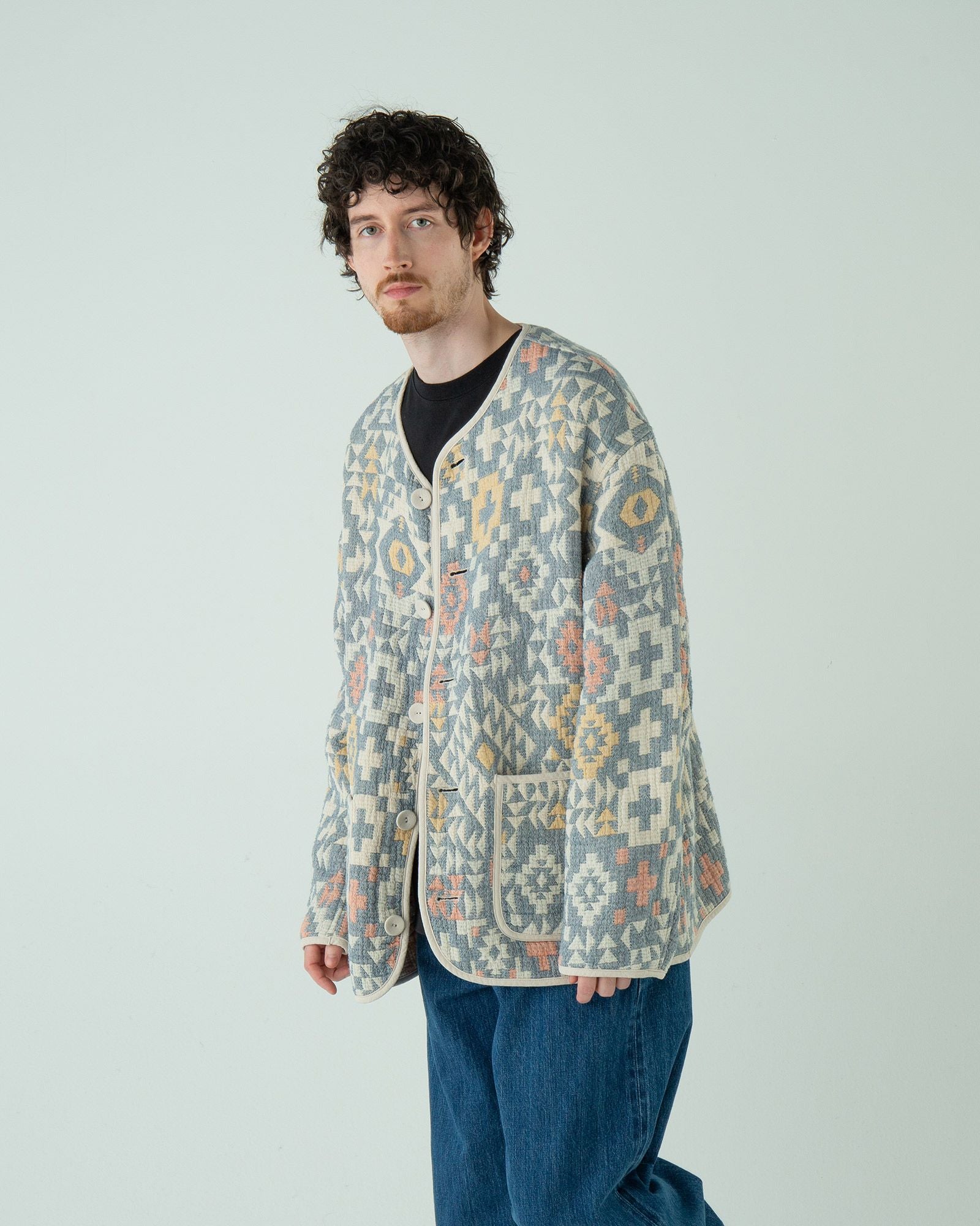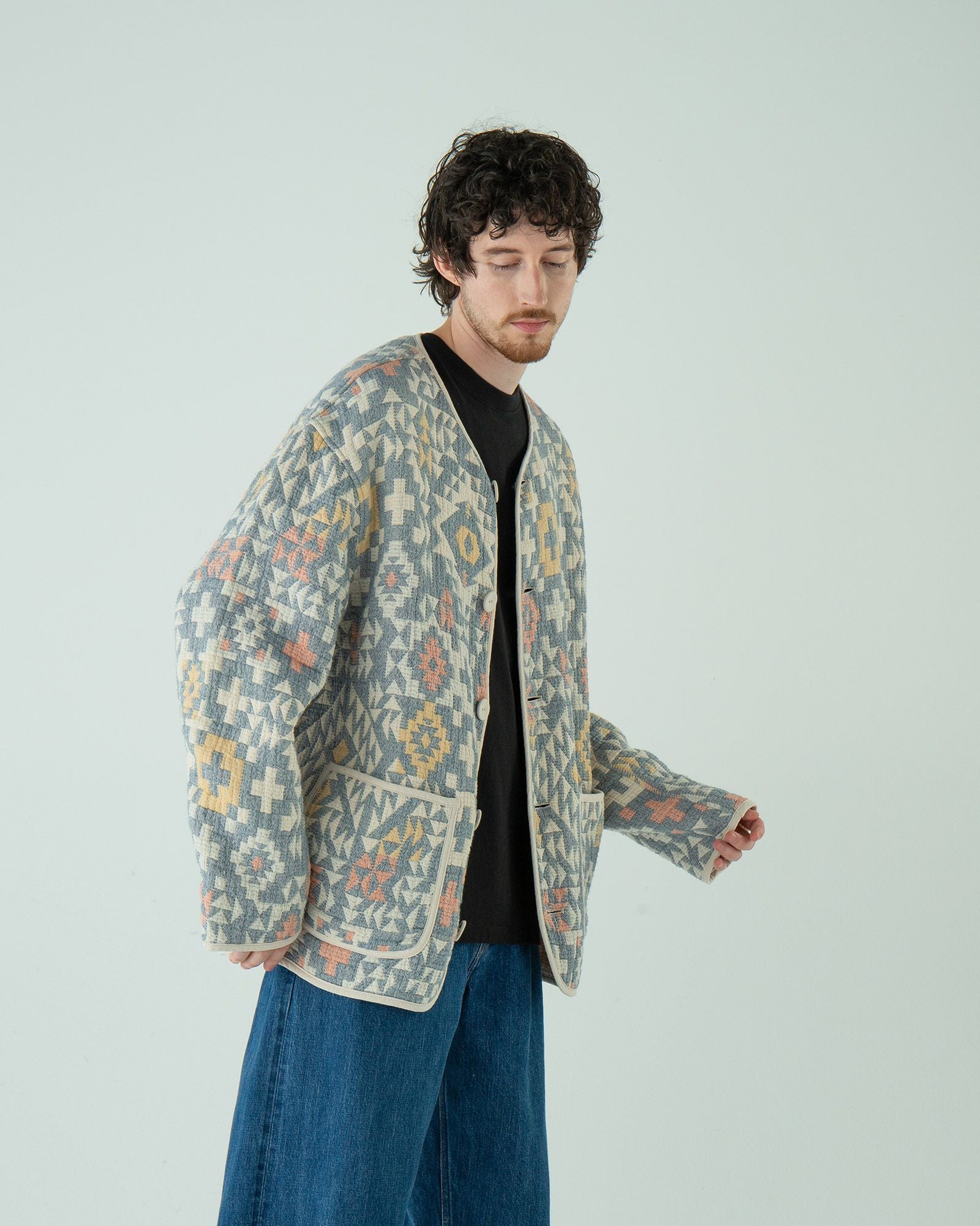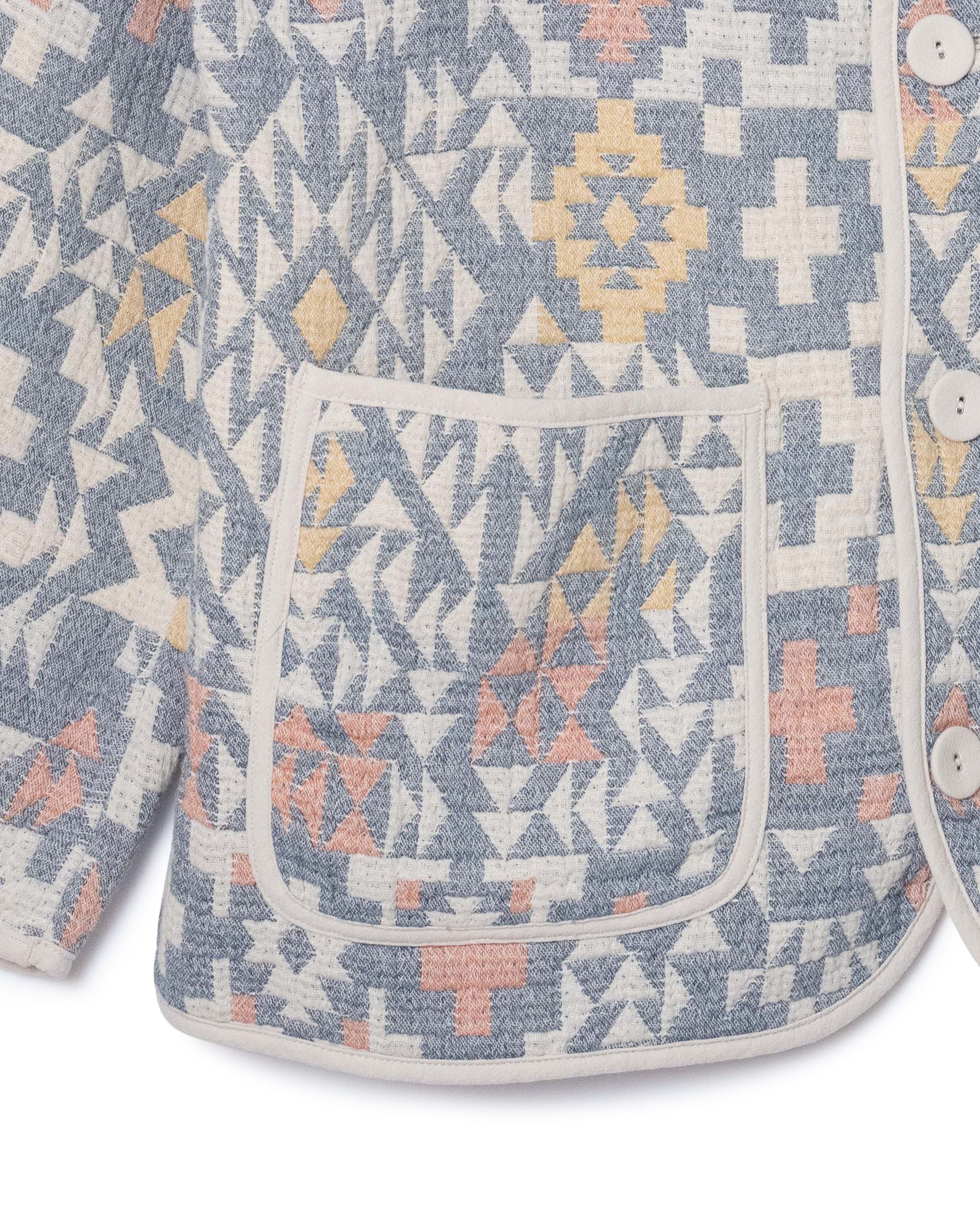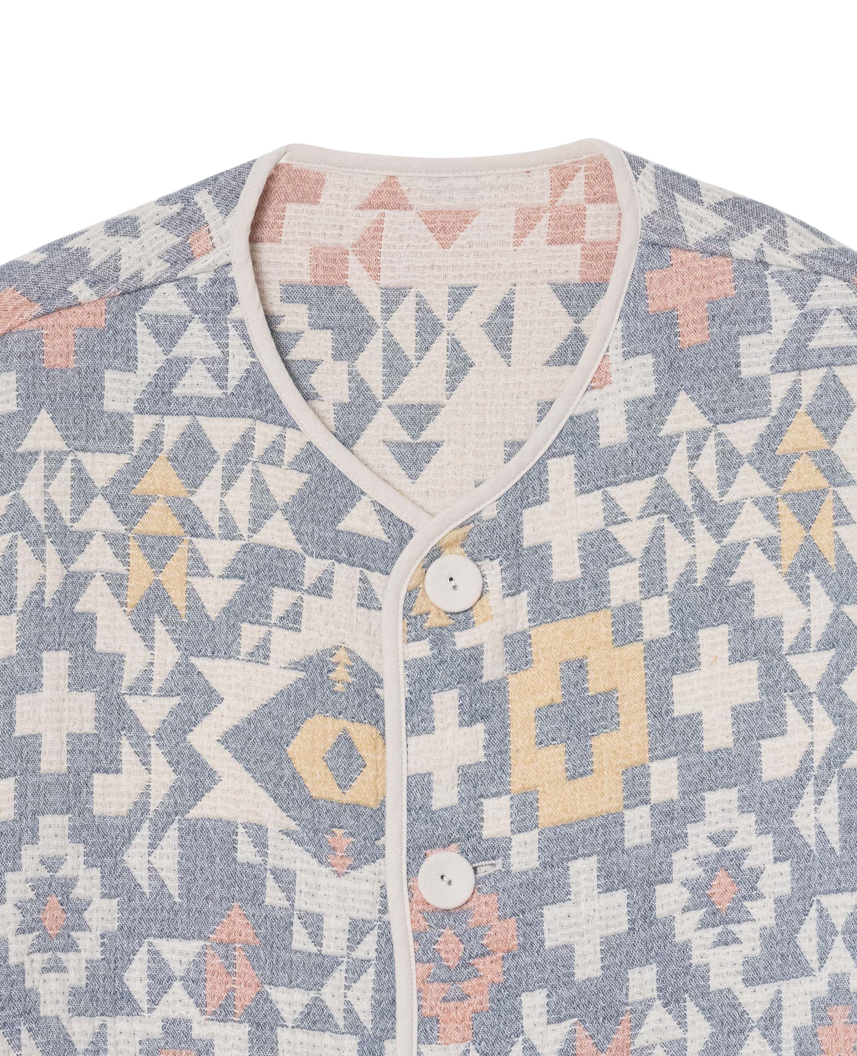 3重織りガーゼに太番手糸を入れて軽量かつ嵩高に仕上げています。ジャカードにすることで立体感のある柄を表現。