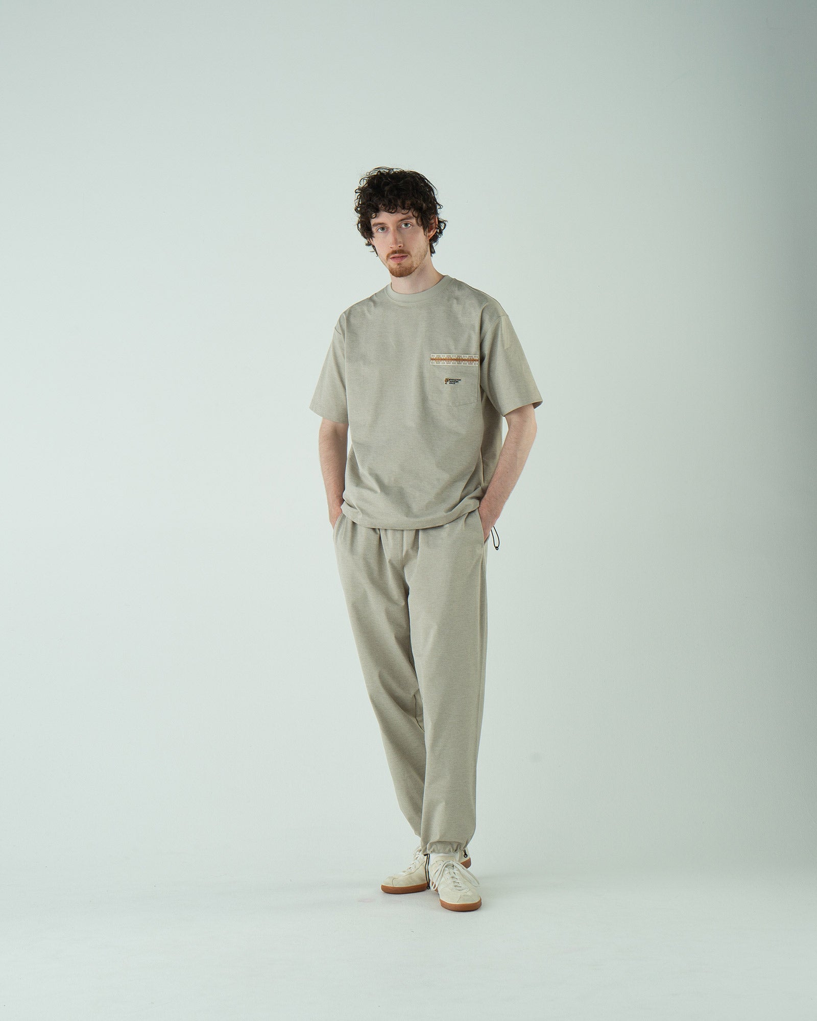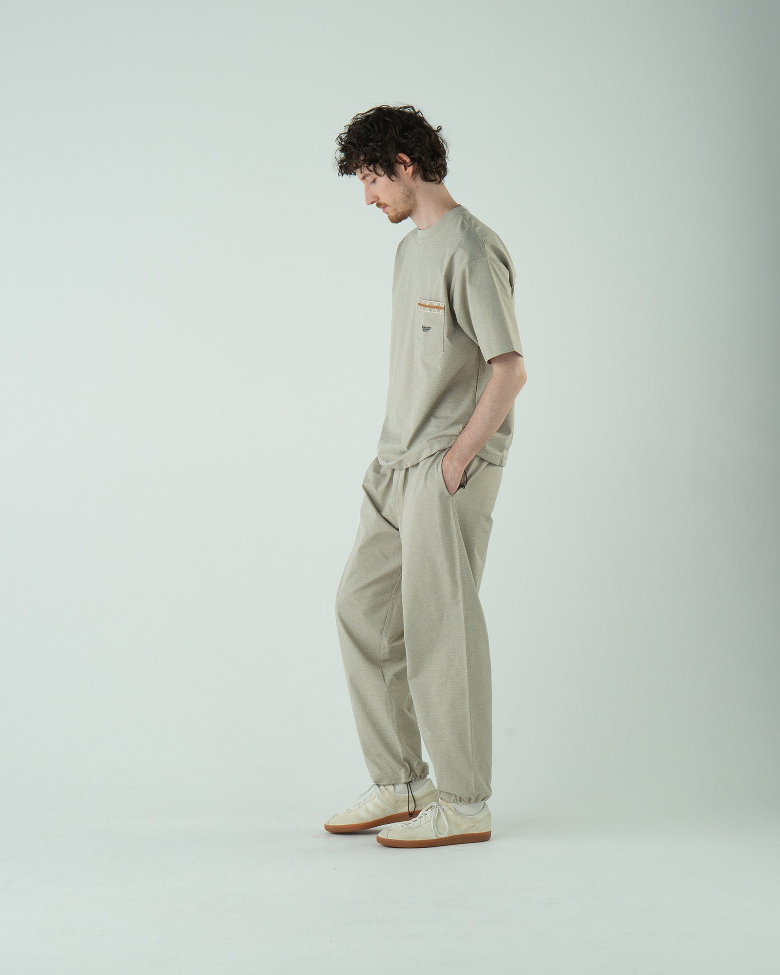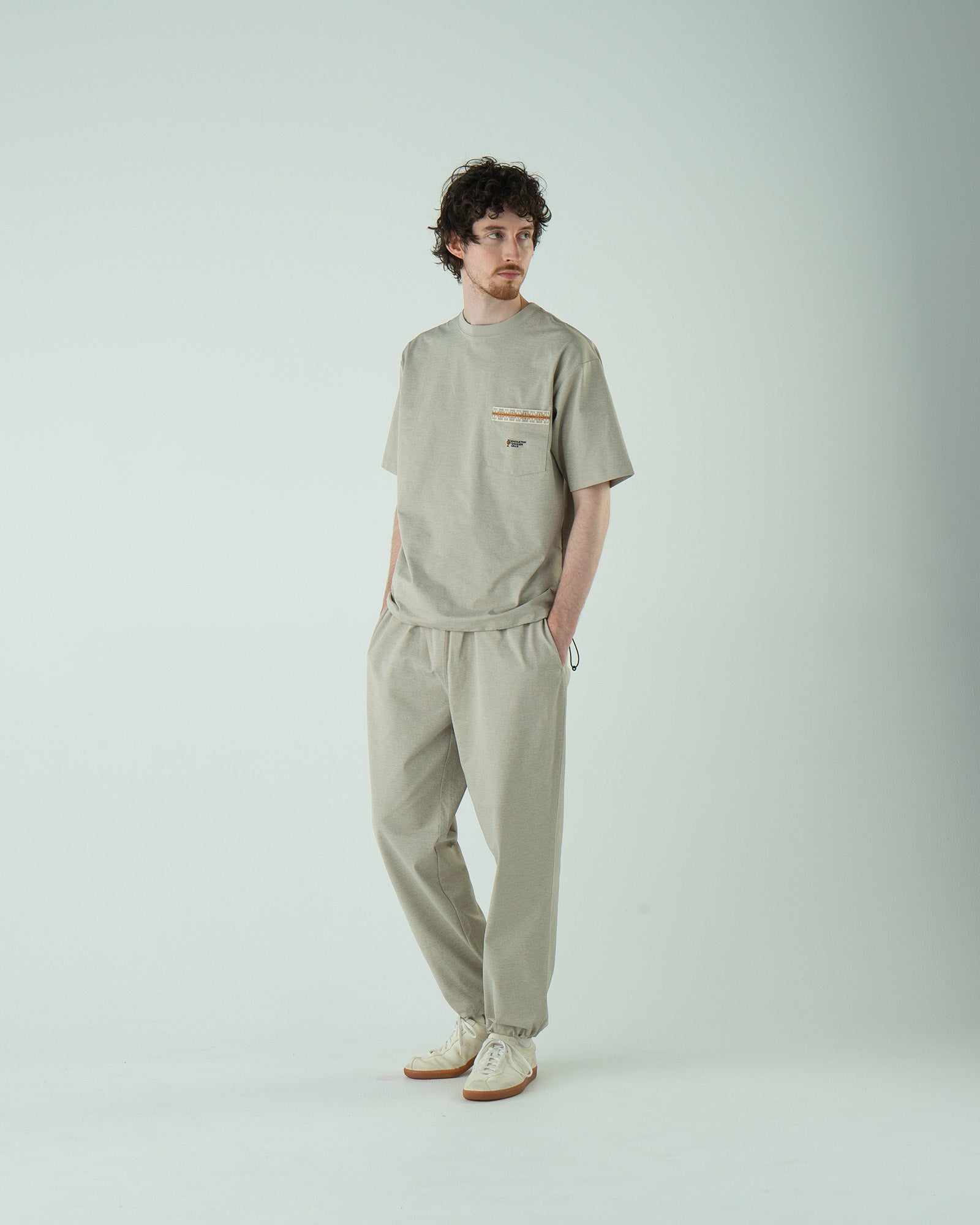 → Tシャツだけを活かして、別素材とミックス。蒸れずに軽く動けるのが◎。