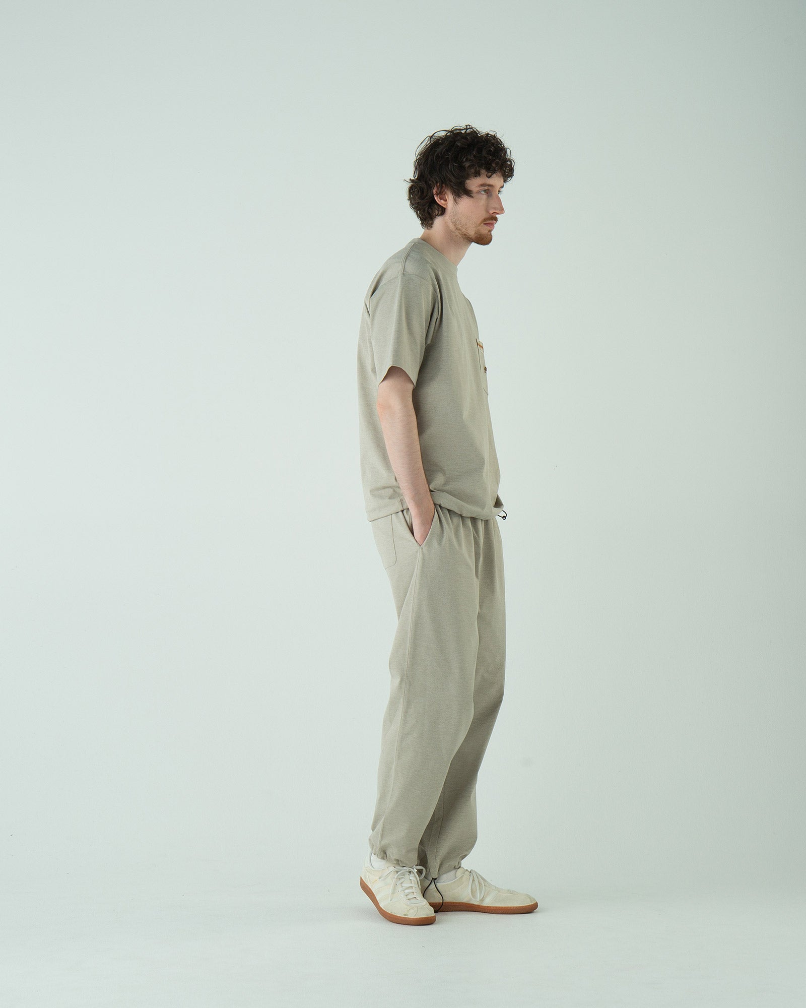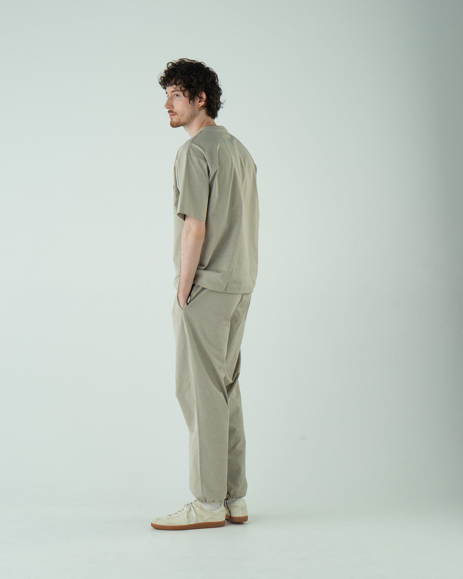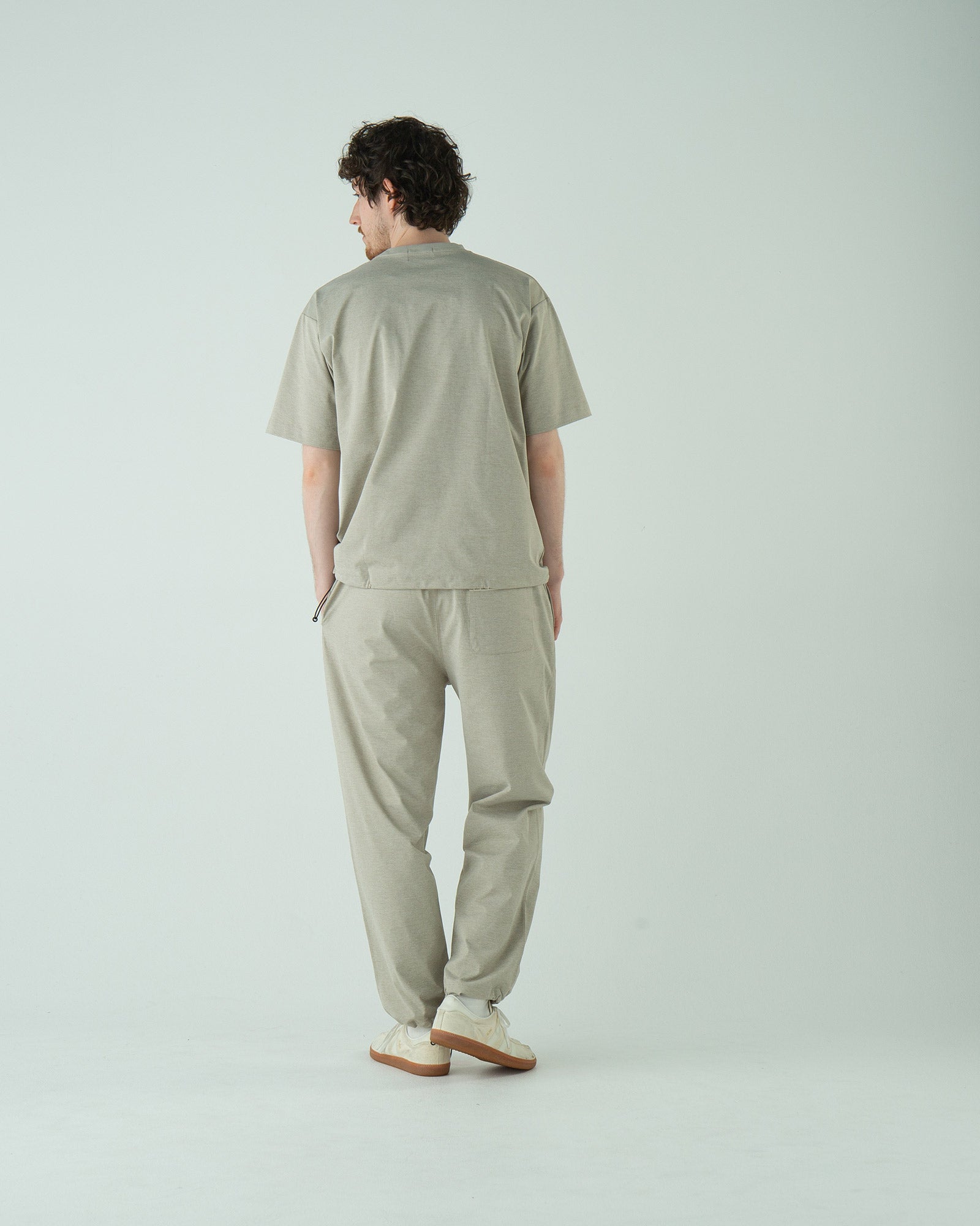 ・同素材ならではの統一感があり、上下セットで着ると“上質なセットアップ風”に