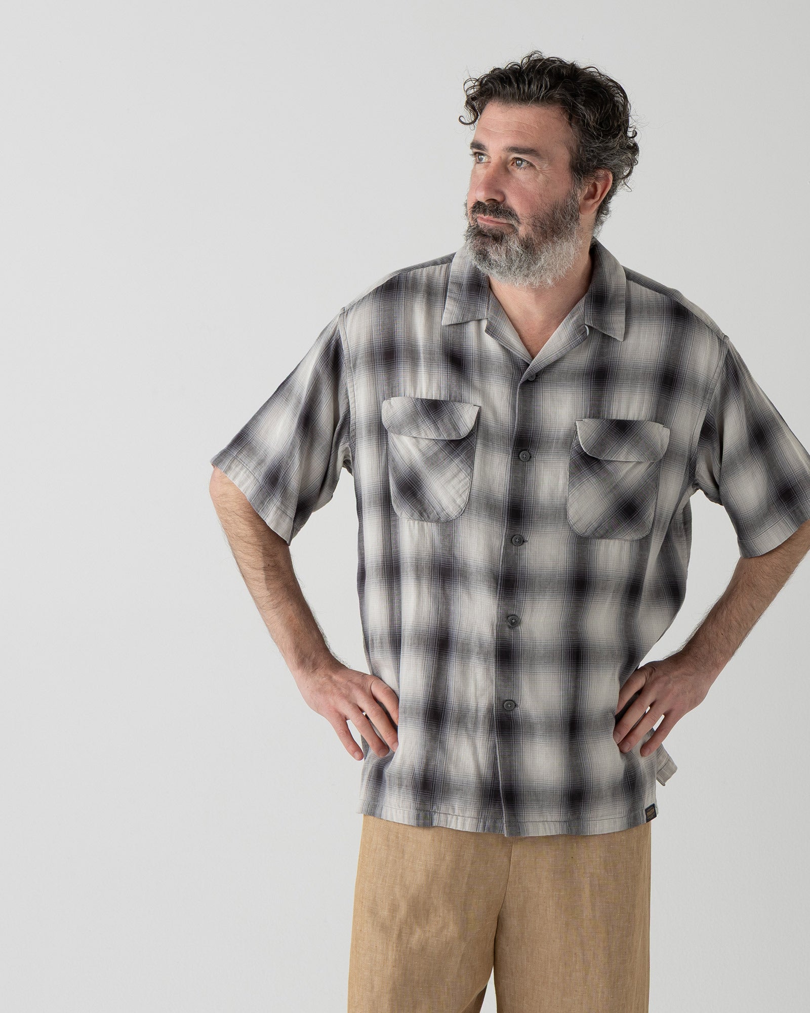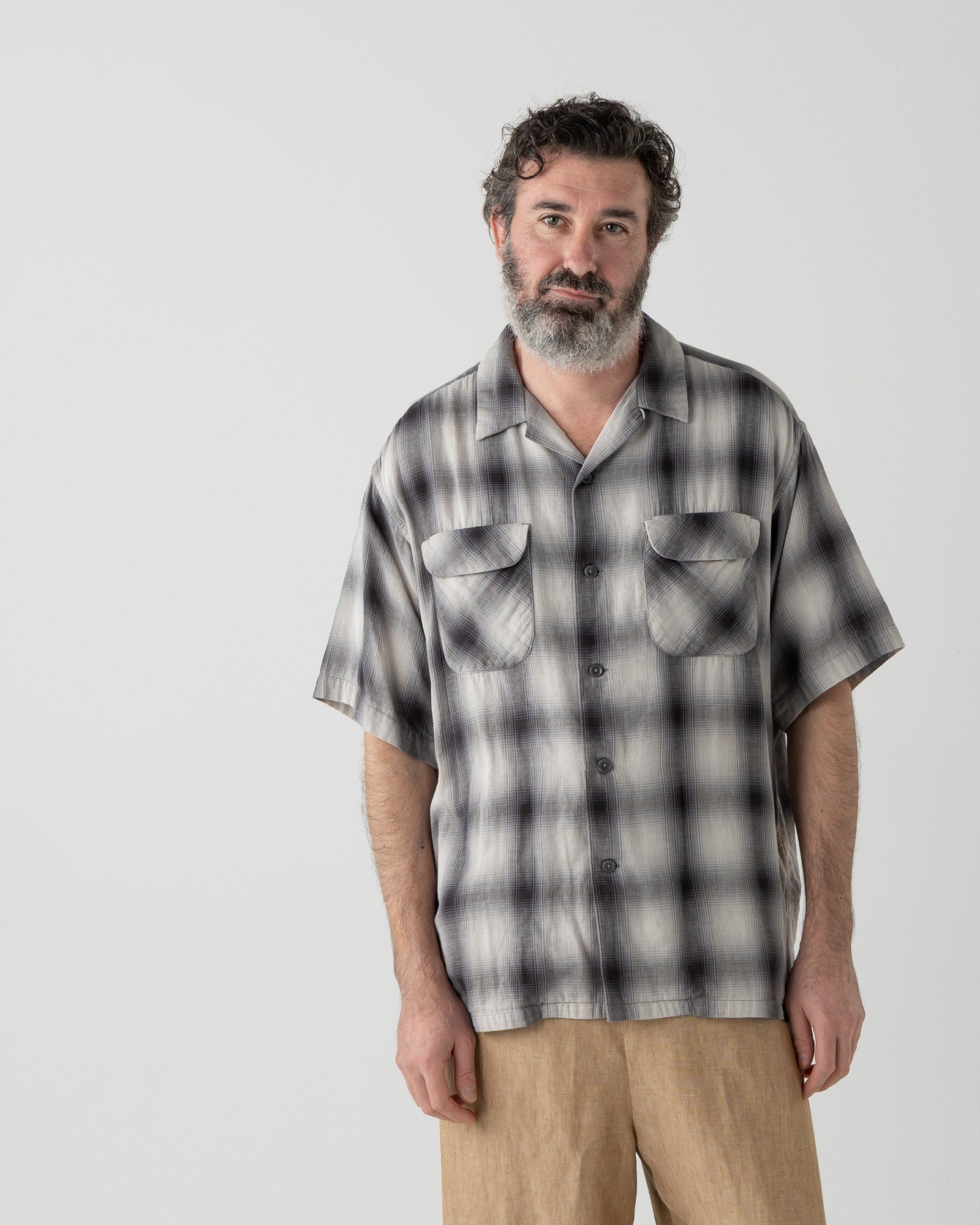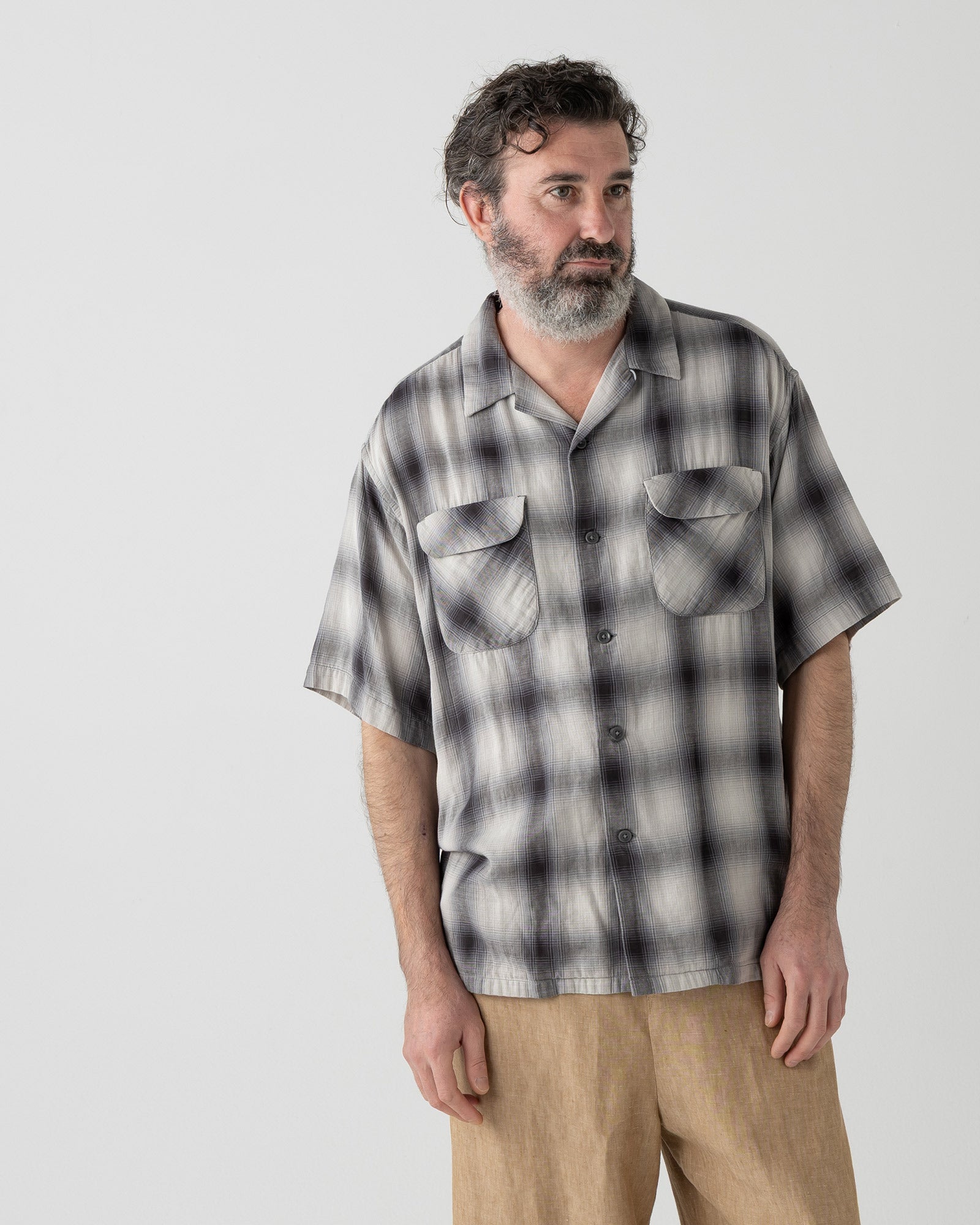 オープンカラー・シャツ・S/S - GRAY/BONE