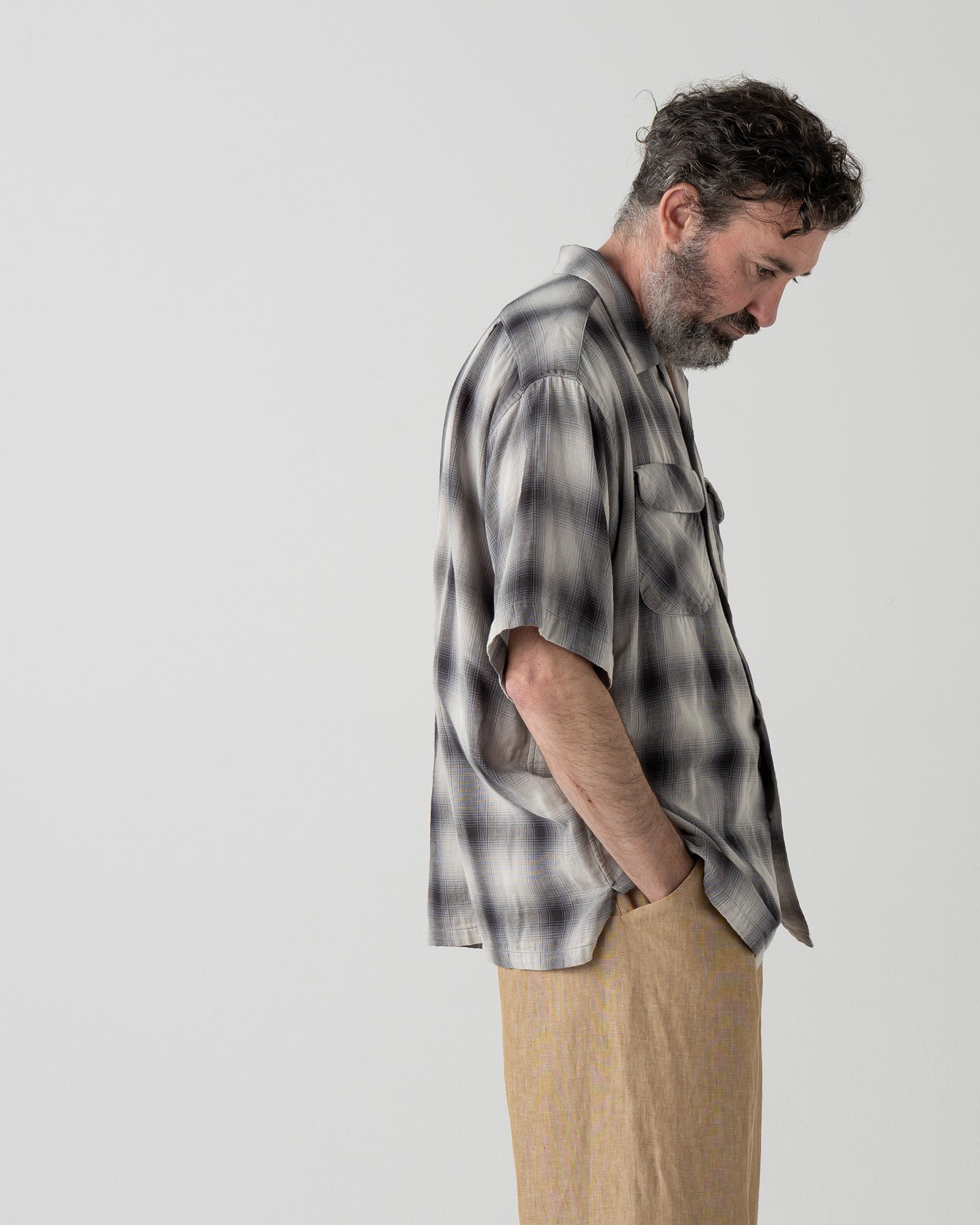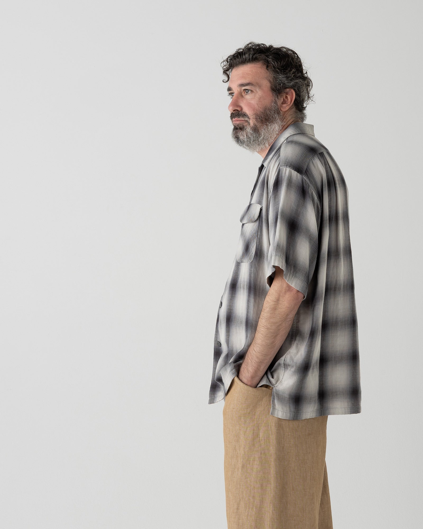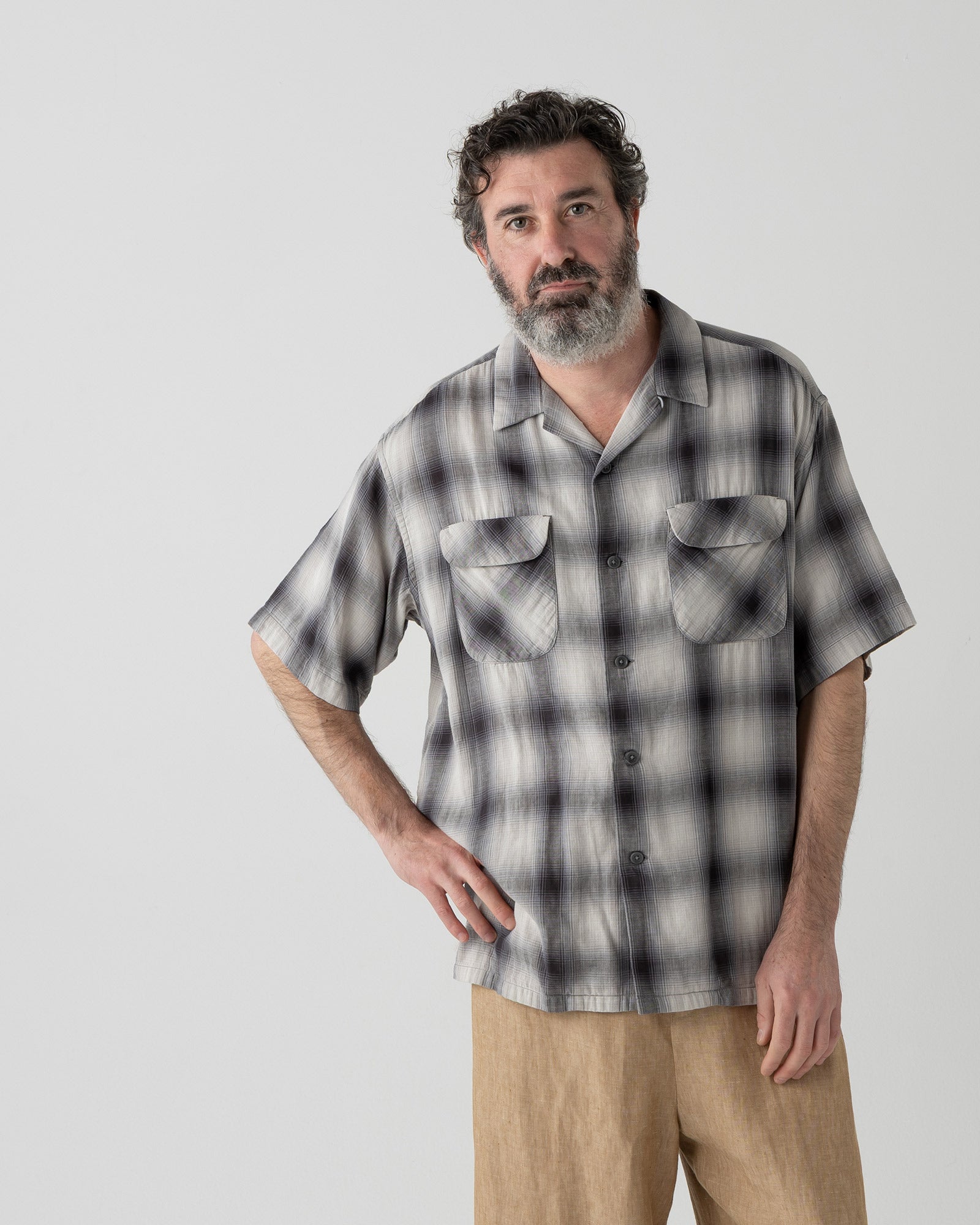 オープンカラー・シャツ・S/S - GRAY/BONE