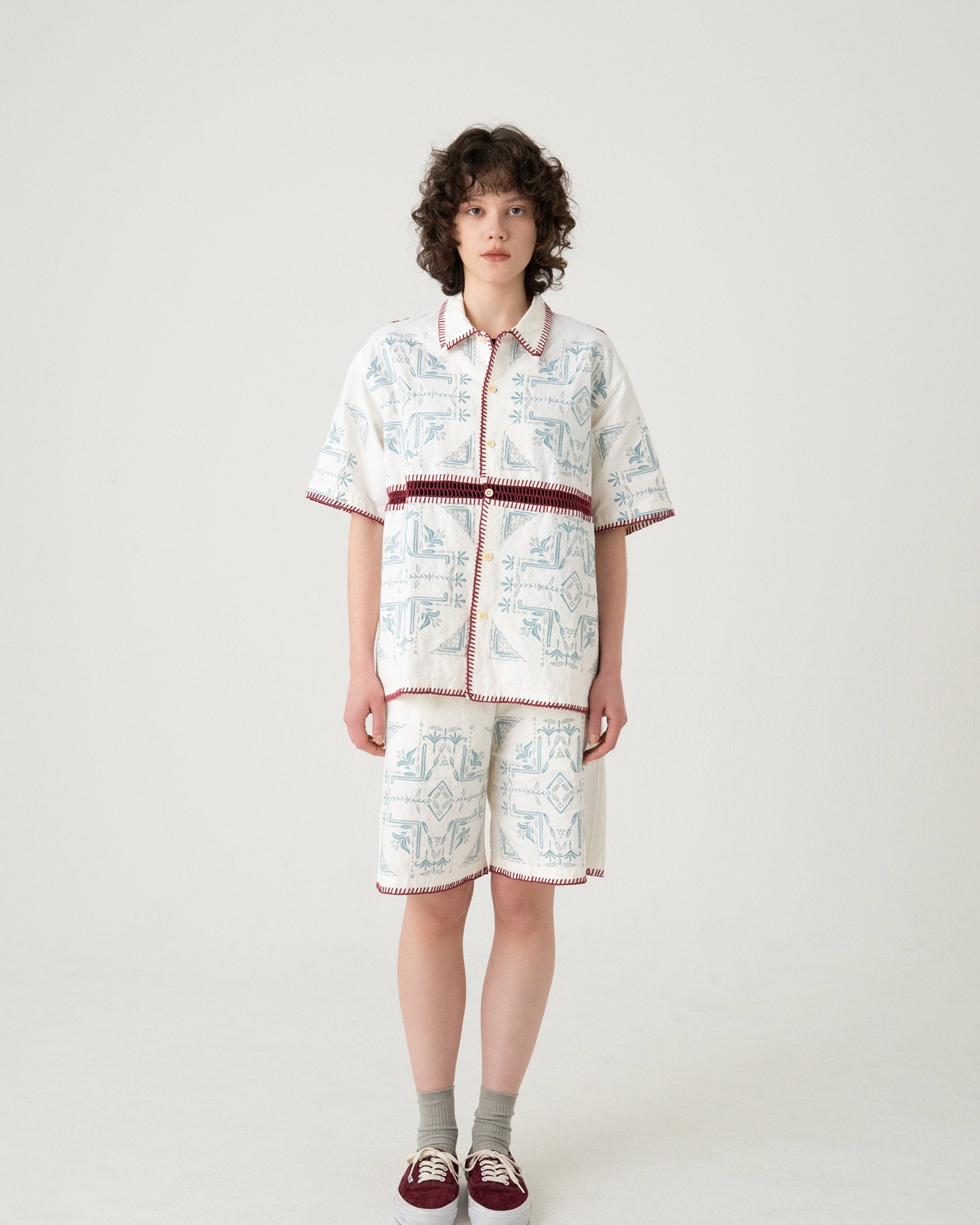 ガーメントダイ・EMB・オープンカラーシャツ