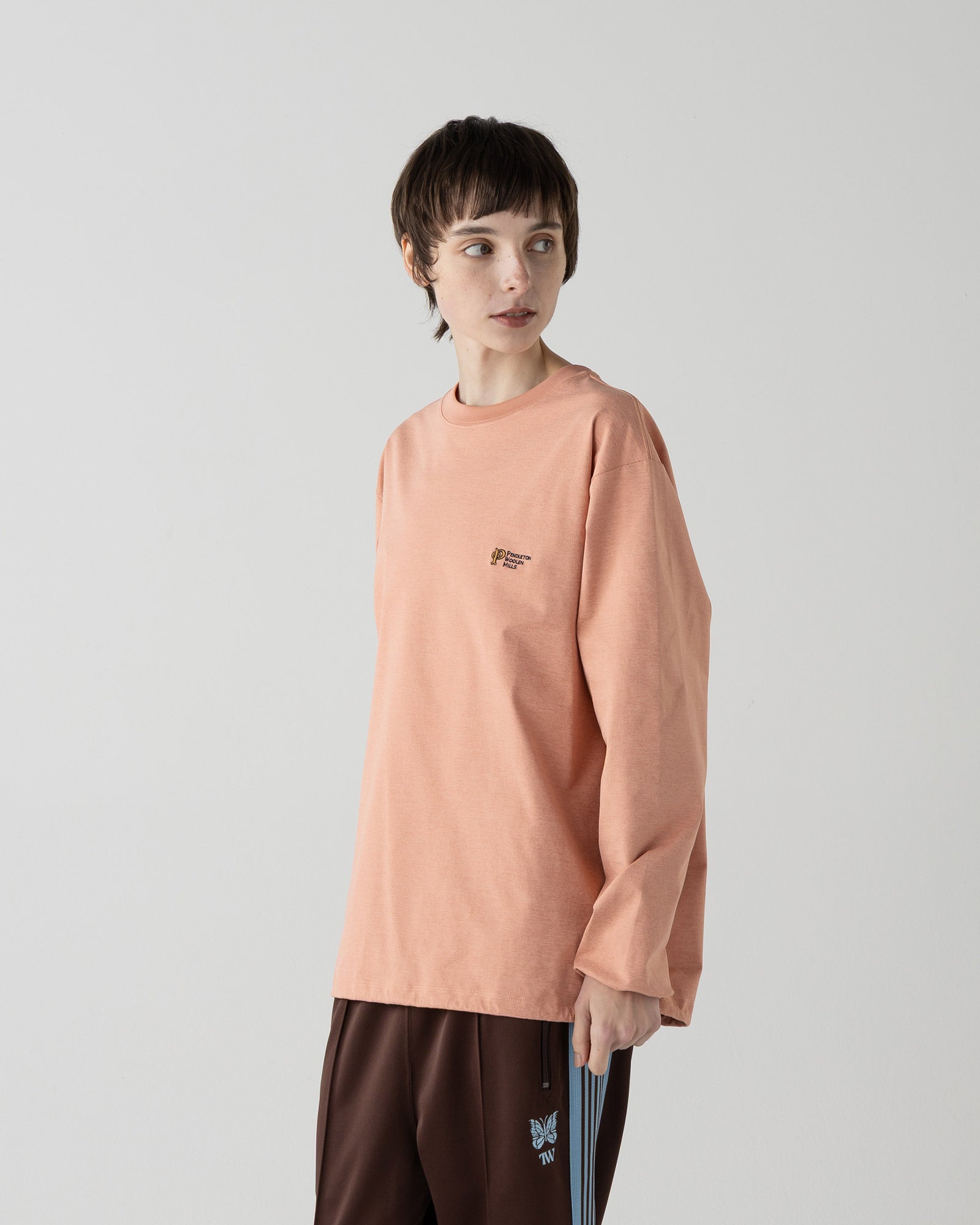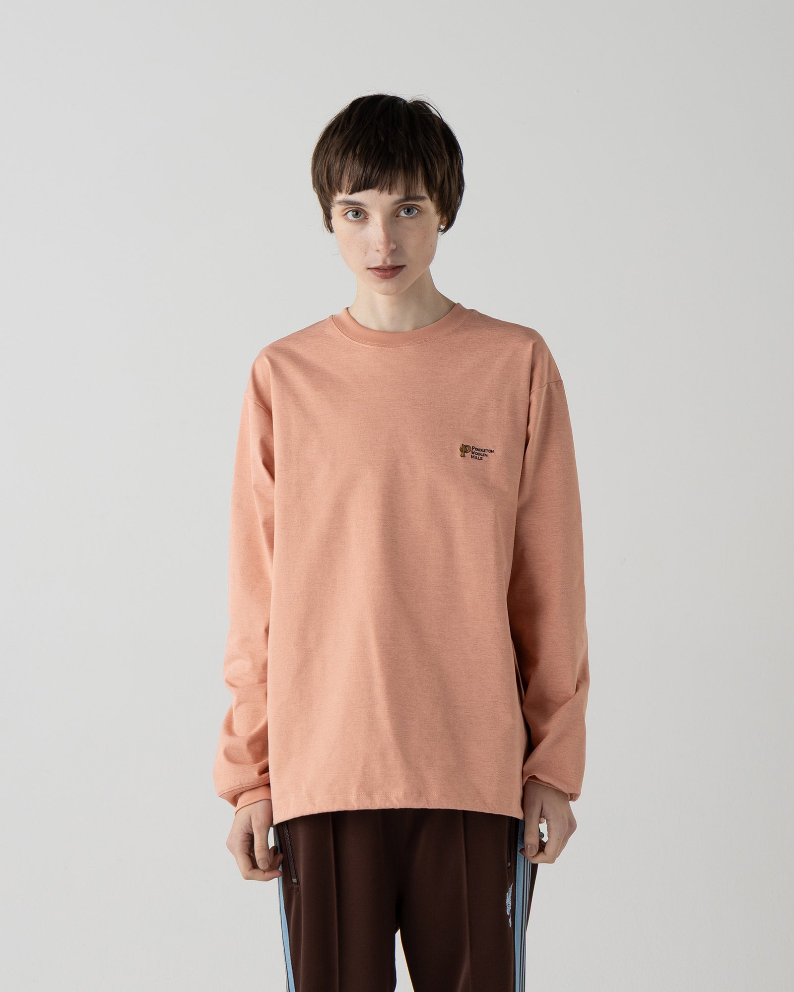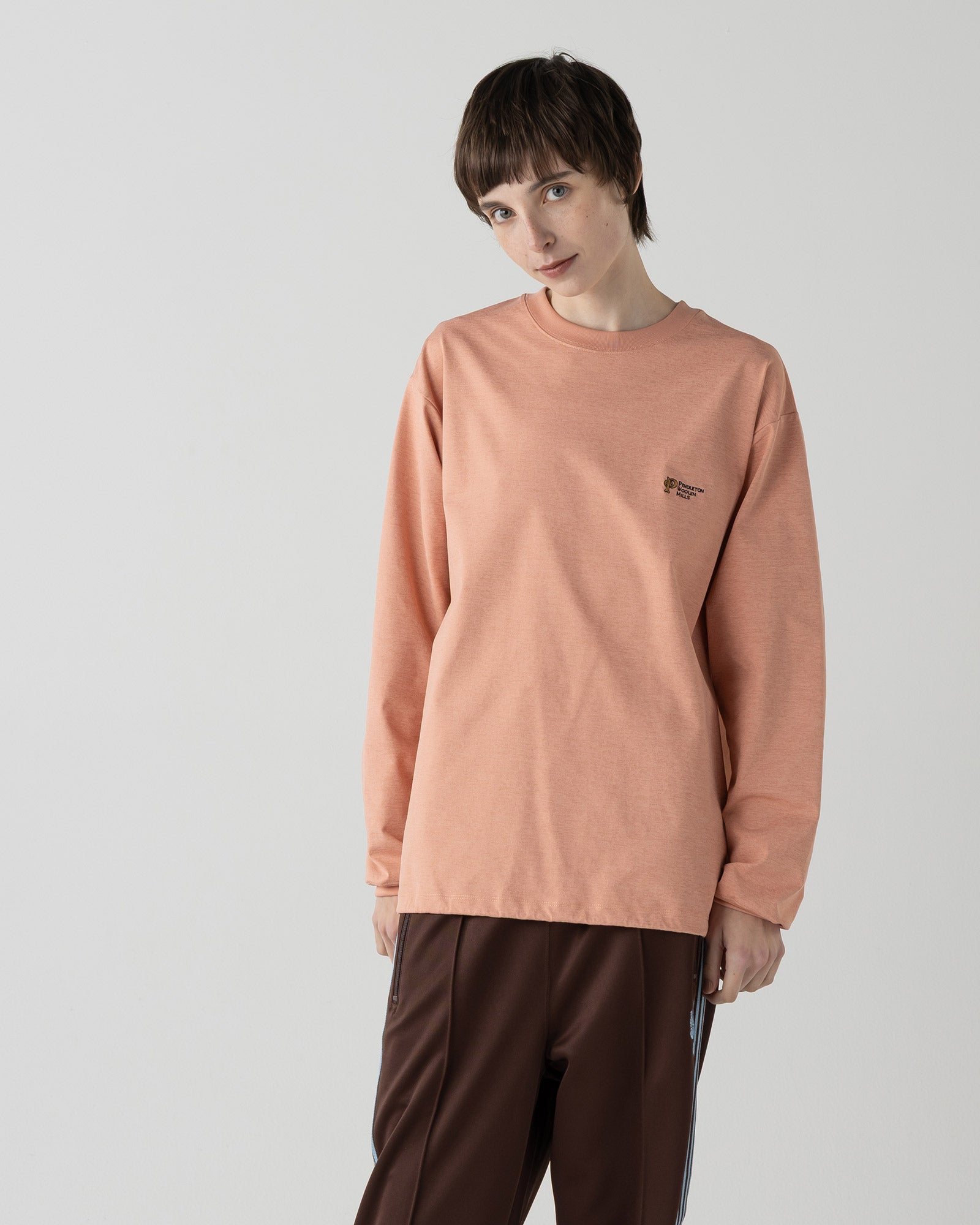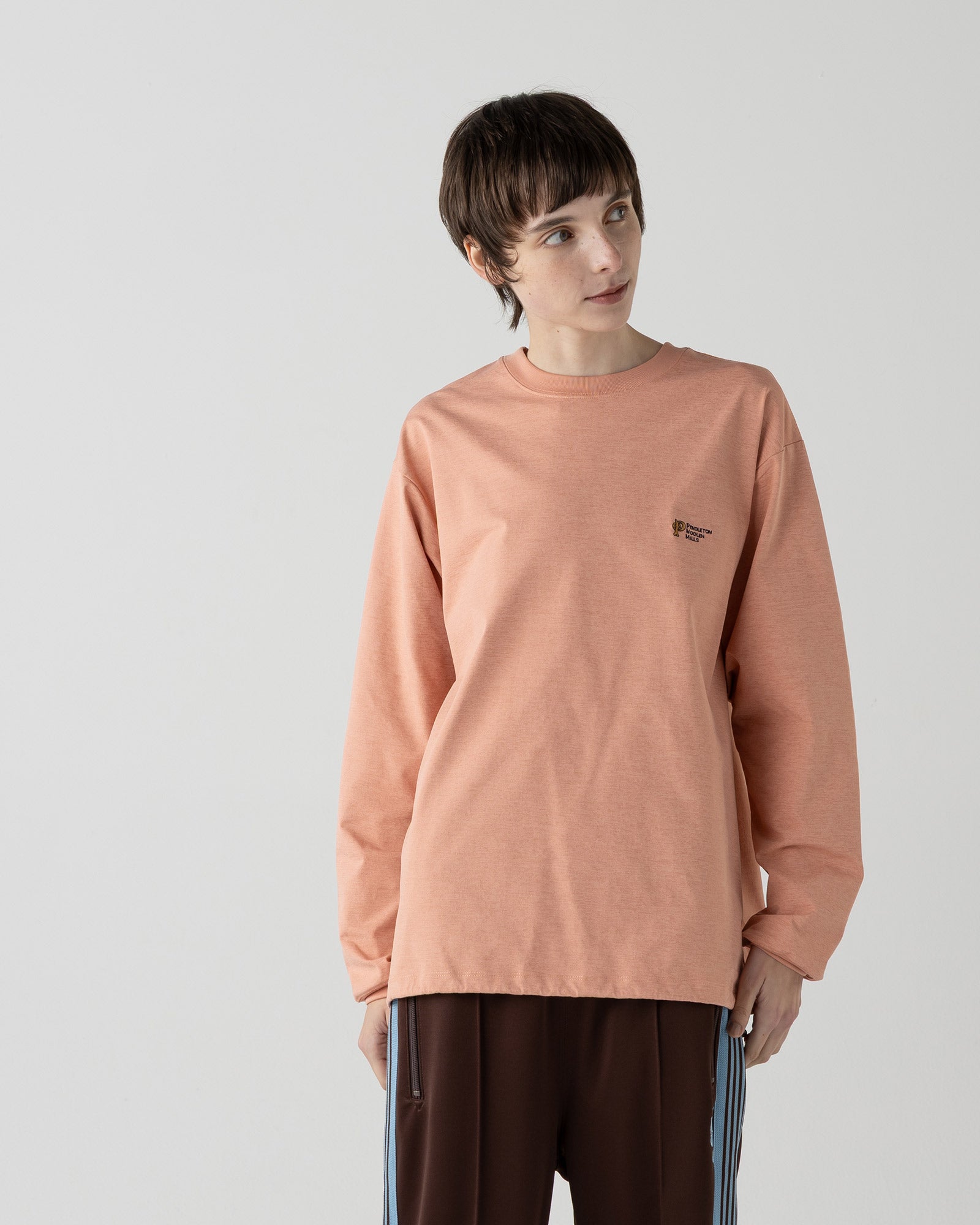 着用シーンを選ばず、ワードローブに1枚あると重宝する万能ロングスリーブです。
