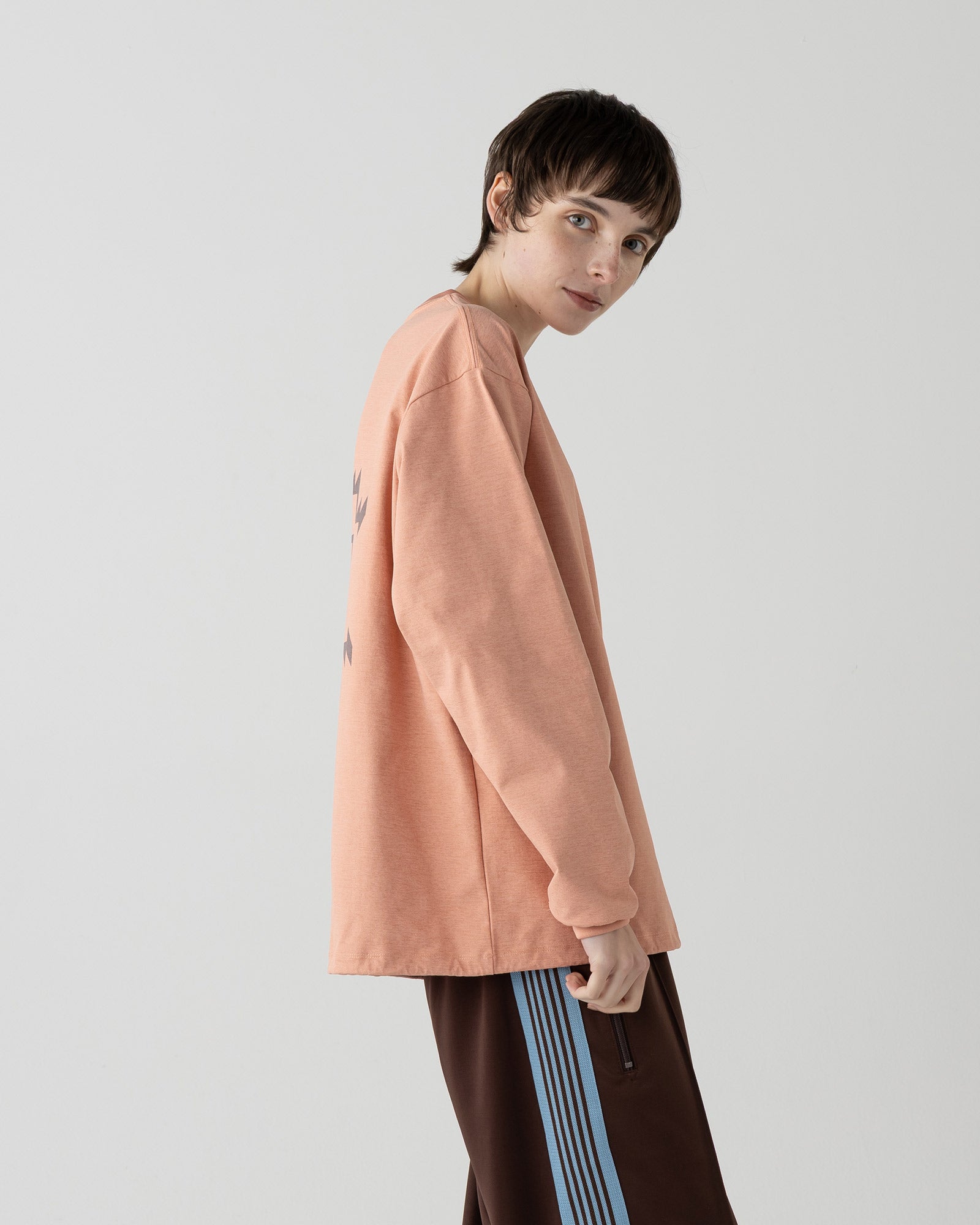 無地TEEの扱いやすさと、バックプリントの存在感が絶妙に融合したデザインで、1枚でスタイリングを完成へ導く“主役級L/S TEE”に仕上がっています。