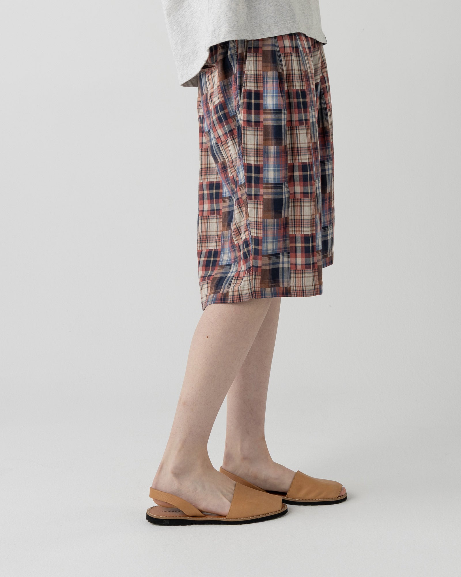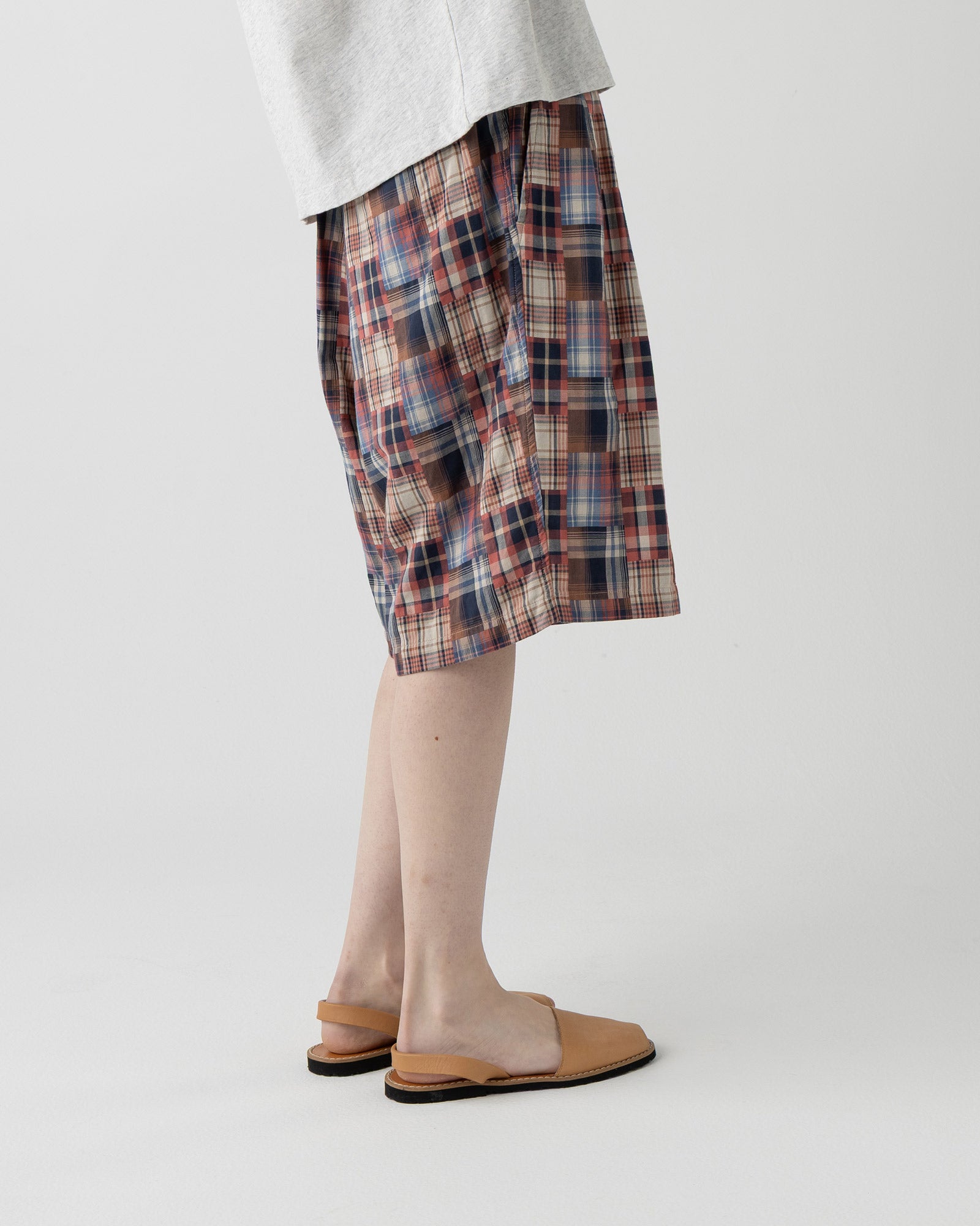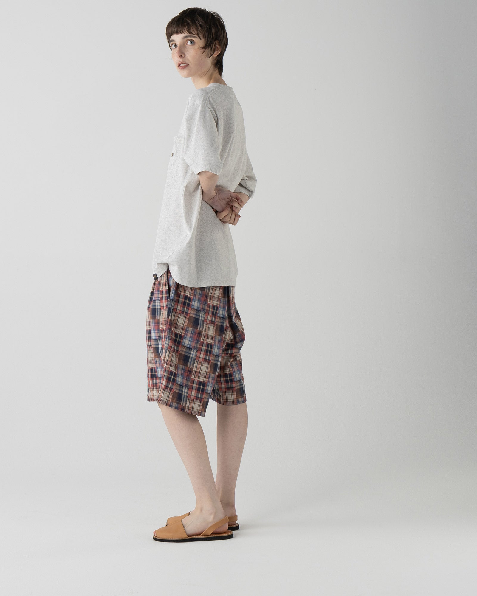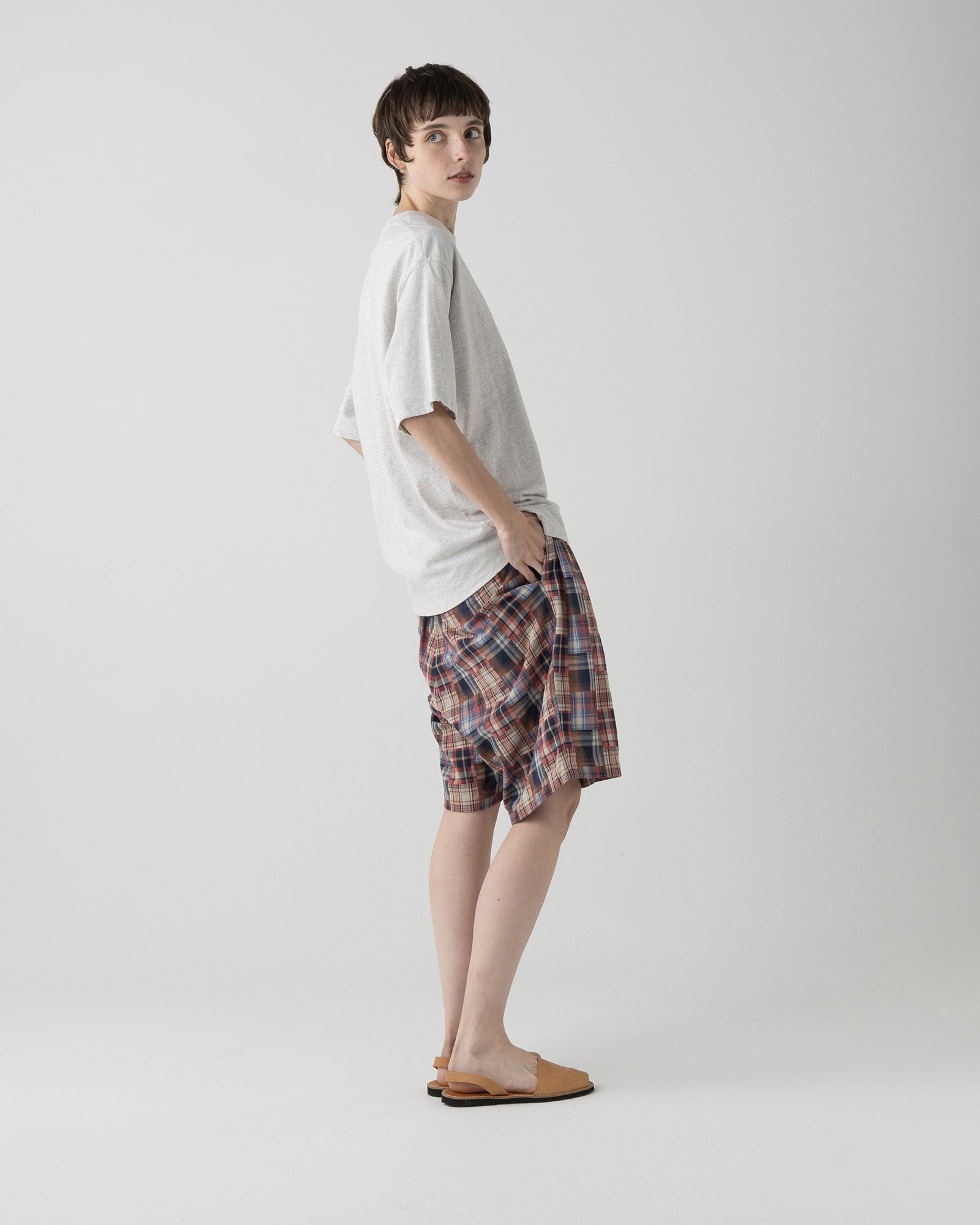 Pendletonアーカイブチェックをパッチワーク風にアレンジしたユニセックスツータックショーツは、軽やかで柔らかな二重織りコットン素材と独特の立体感が魅力。