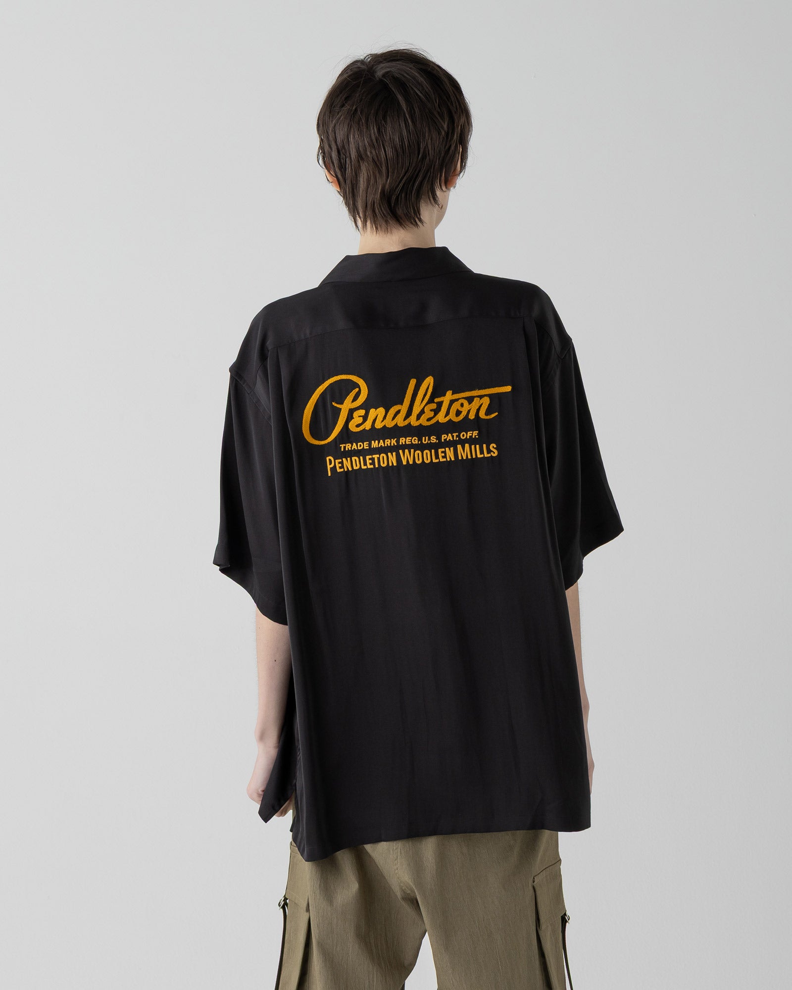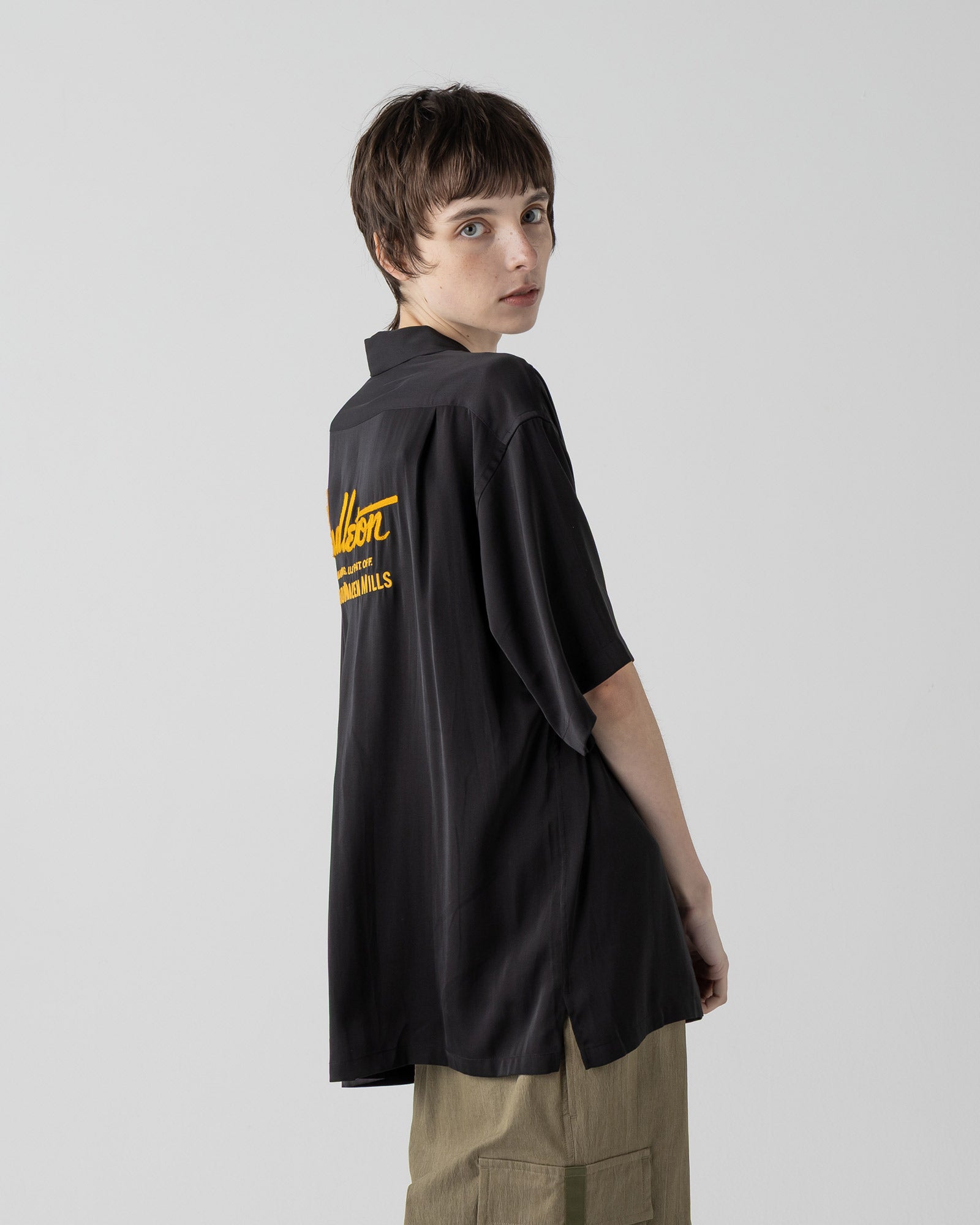 TR素材の滑らかさと光沢感、美しいチェーンステッチ刺繍が特徴の半袖シャツ。
