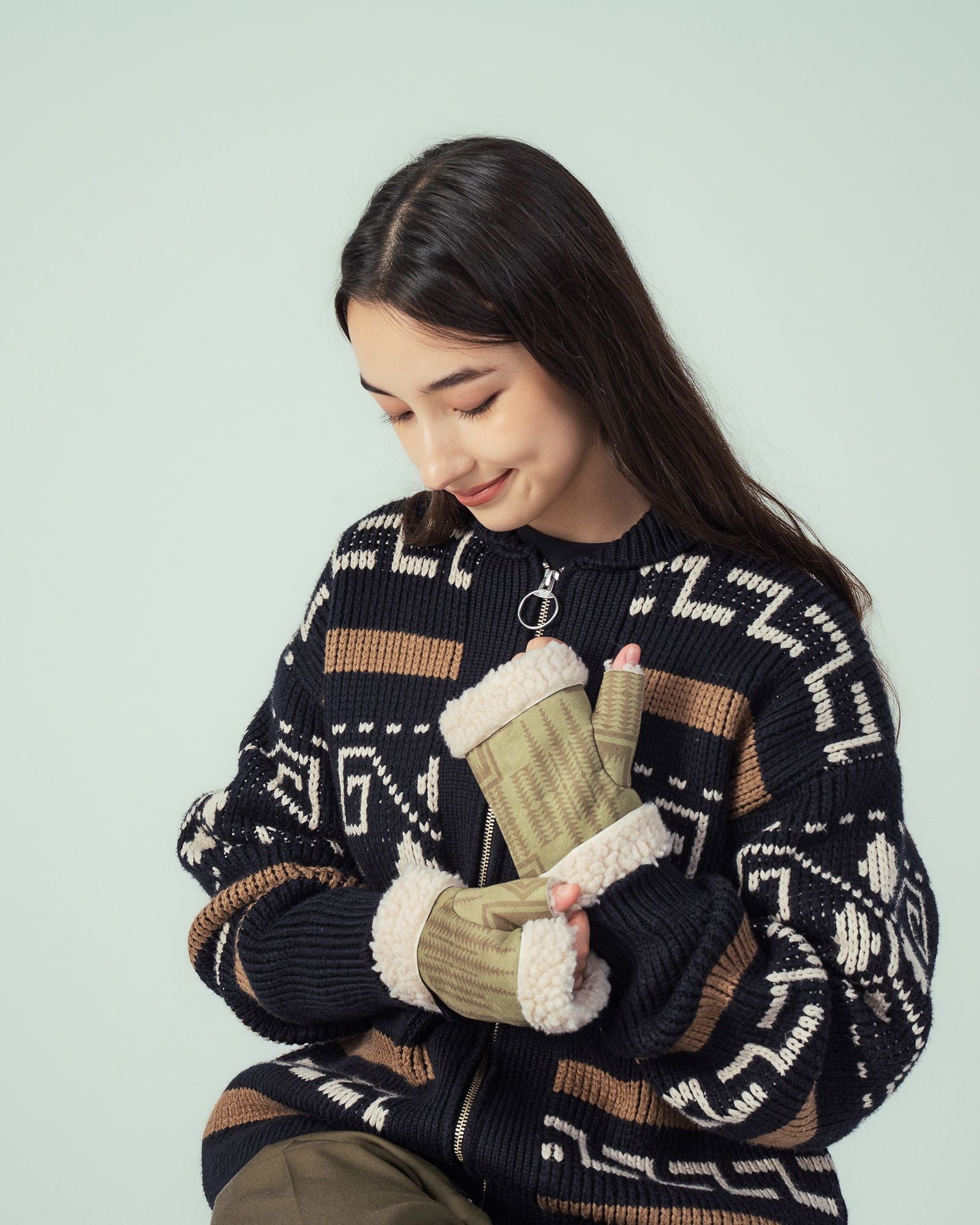 Pendletonのヴィーガンムートングローブは、見た目にも手触りにも温もりを感じさせる一品。内側のボアが冷たい風をシャットアウトしながらもやわらかなフィット感をキープ。幾何学柄がブランドらしい遊び心をプラスし、どんなコーディネートにもさりげなくフィットします。