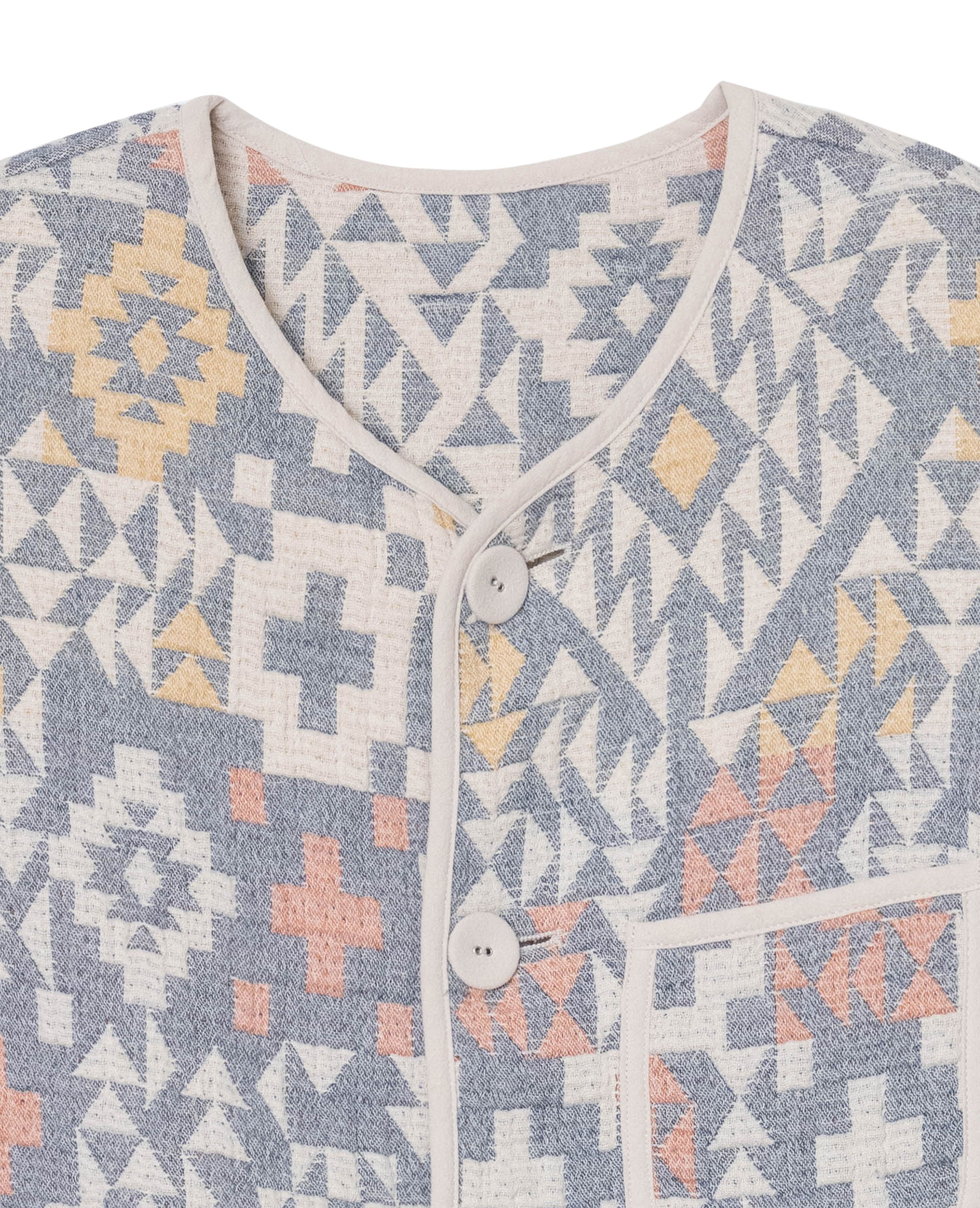 3重織りガーゼに太番手糸を入れて軽量かつ嵩高に仕上げています。ジャカードにすることで立体感のある柄を表現。