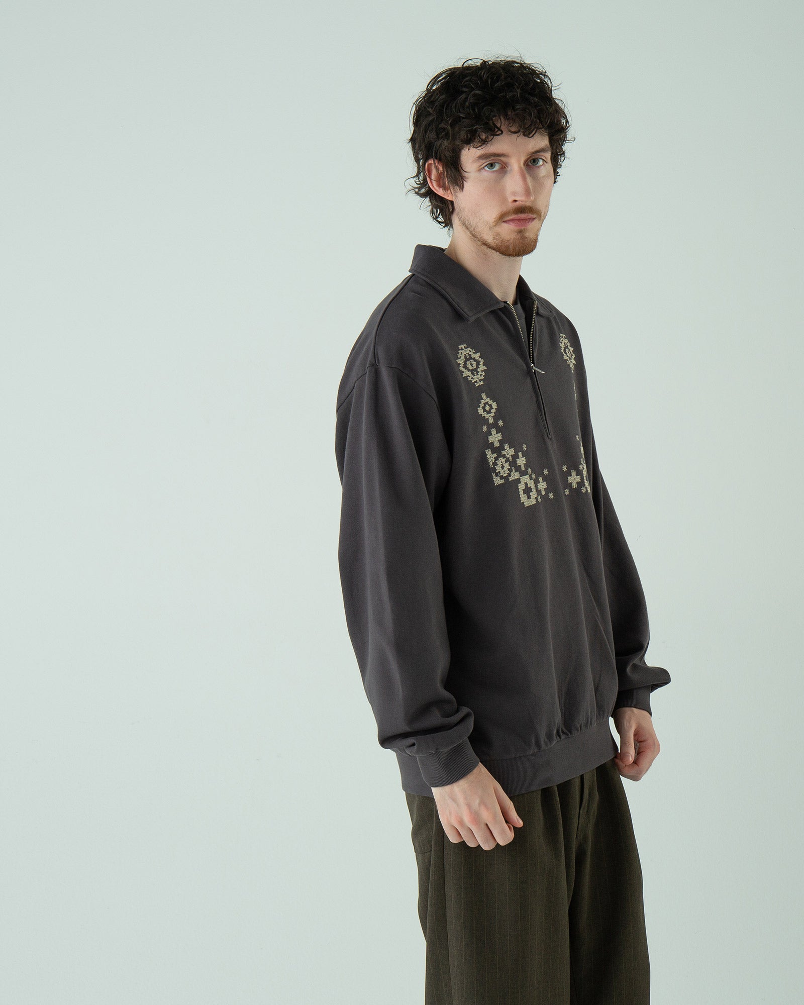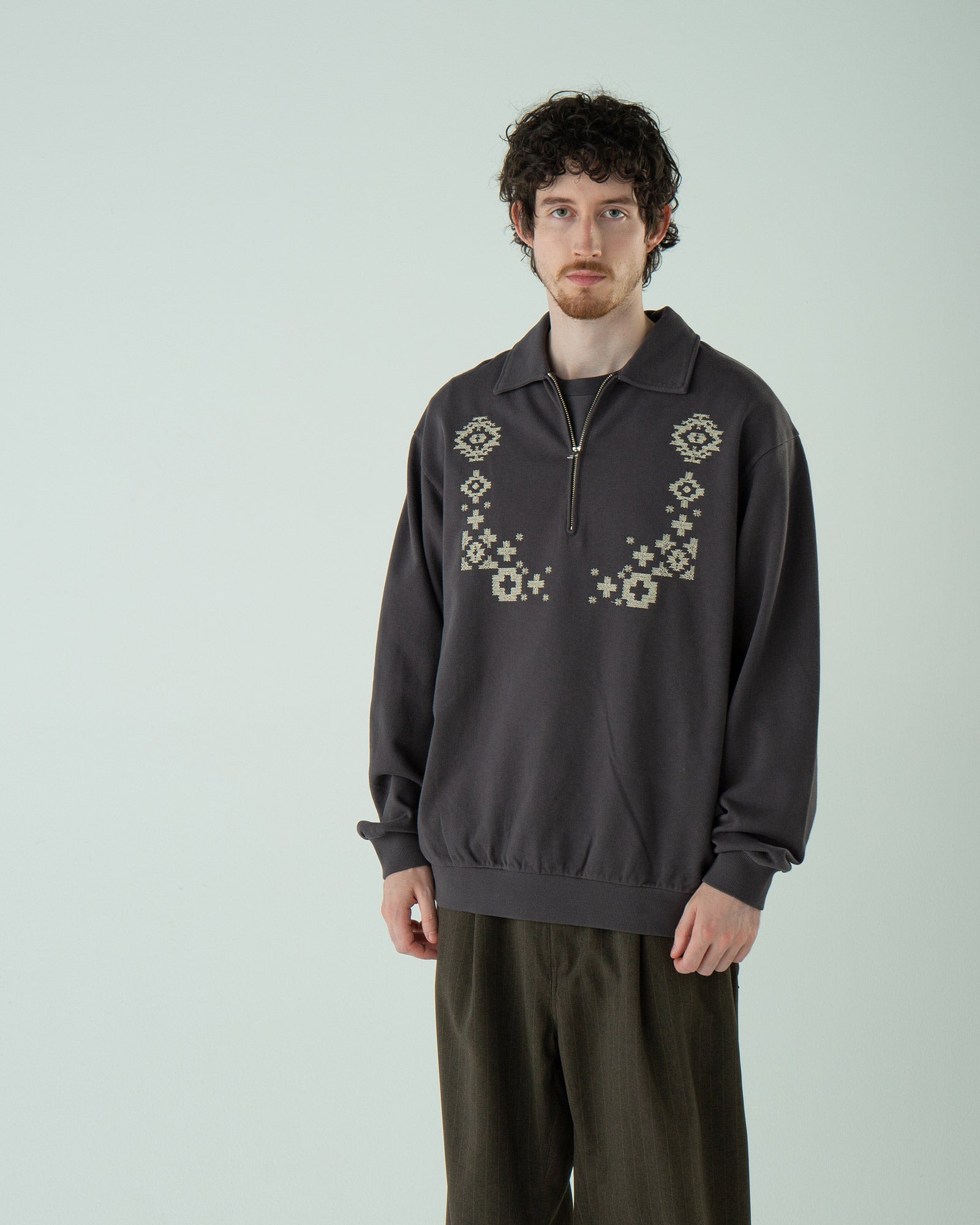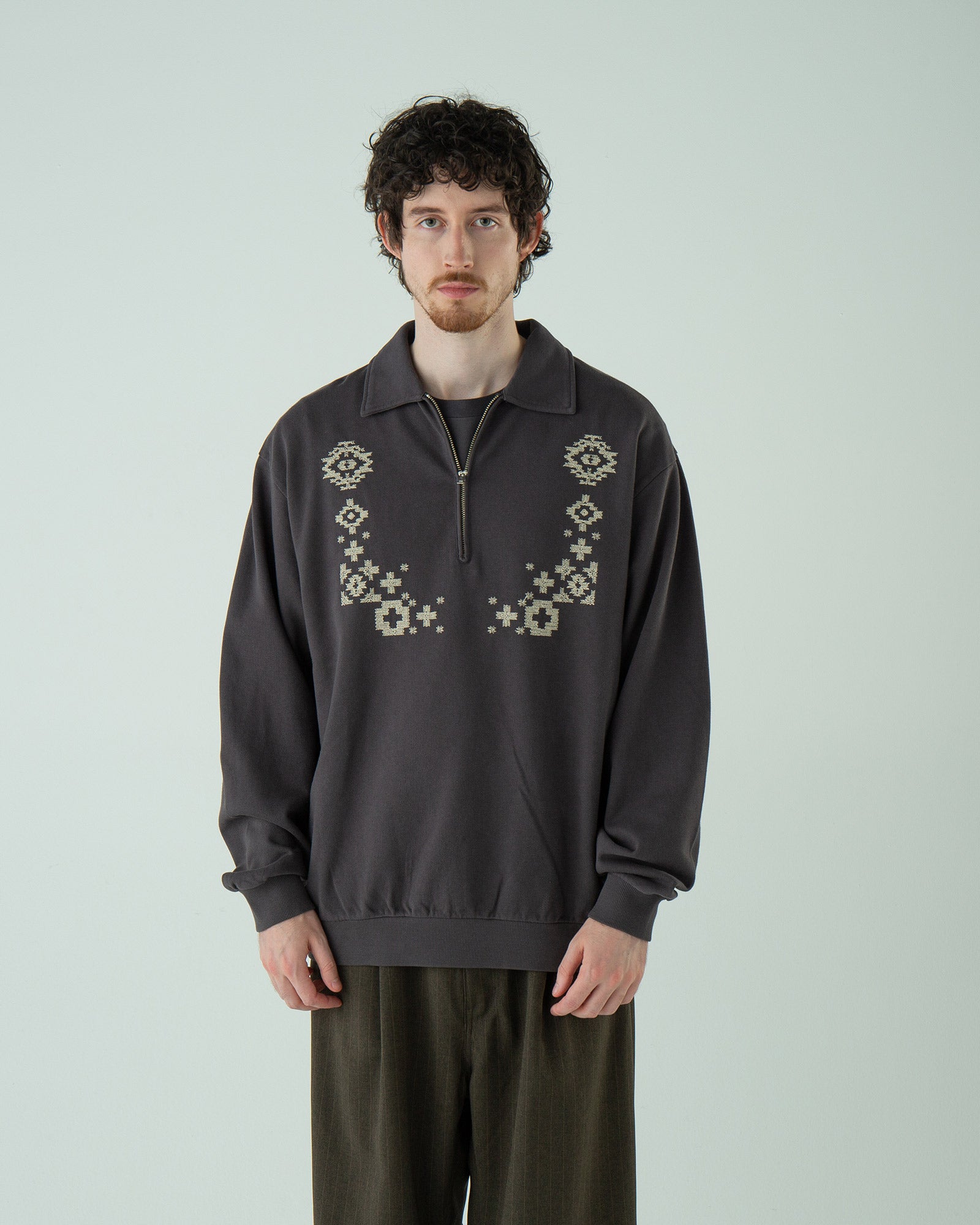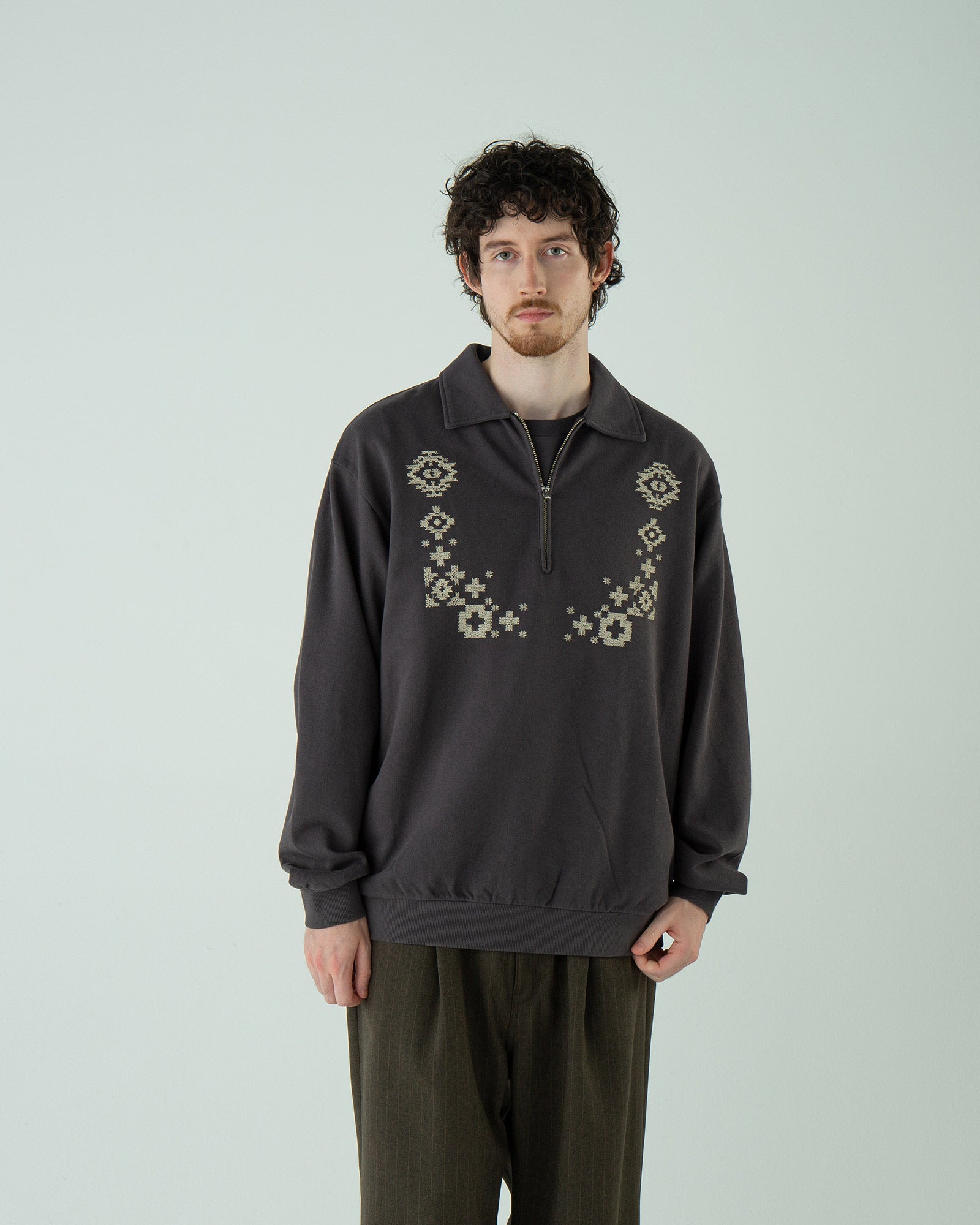 ピグメントダイ・EMB・ハーフジッププルーバー