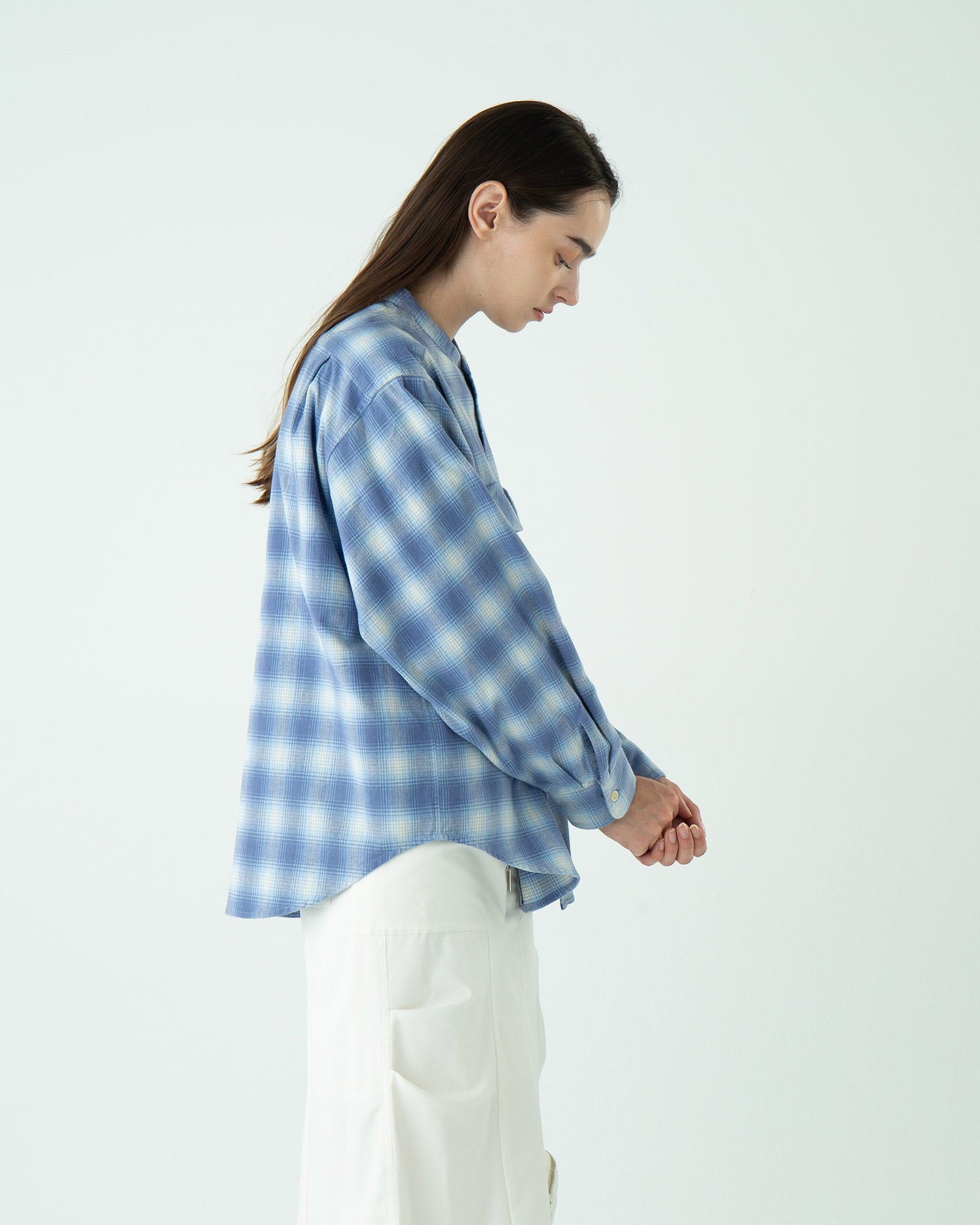 ・ドルマン袖の特性上、アウターを羽織る際に袖が収まりにくい場合があります。そのため、ドルマンシャツには肩や袖に余裕のあるアウターを選ぶのがベストです。