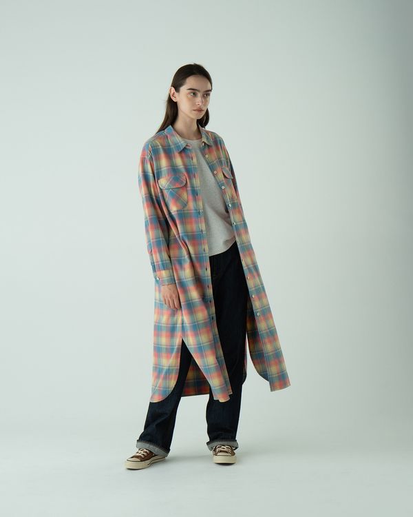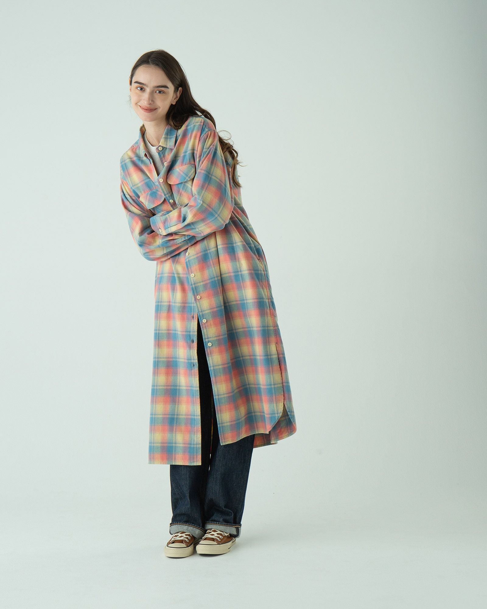 シャツの特性を持ち、動きやすい作りが特徴。さらにドレスとしての丈感がありながら、リラックスして着用できます。