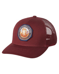 クラシックなトラッカーキャップ。バックは調整可能でぴったりフィットし、フロントには支援する国立公園の刺繍ワッペンが付いています。同製品の売上の一部はアメリカの国立公園維持/管理のために寄付されます。