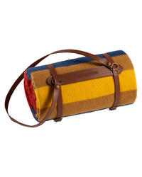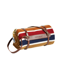 ソファの背もたれやベッドの足元に最適なサイズのヨセミテ国立公園ウールスローは、ドライブやピクニック、野外コンサートでも大活躍。持ち運びに便利なレザー・キャリア付き。