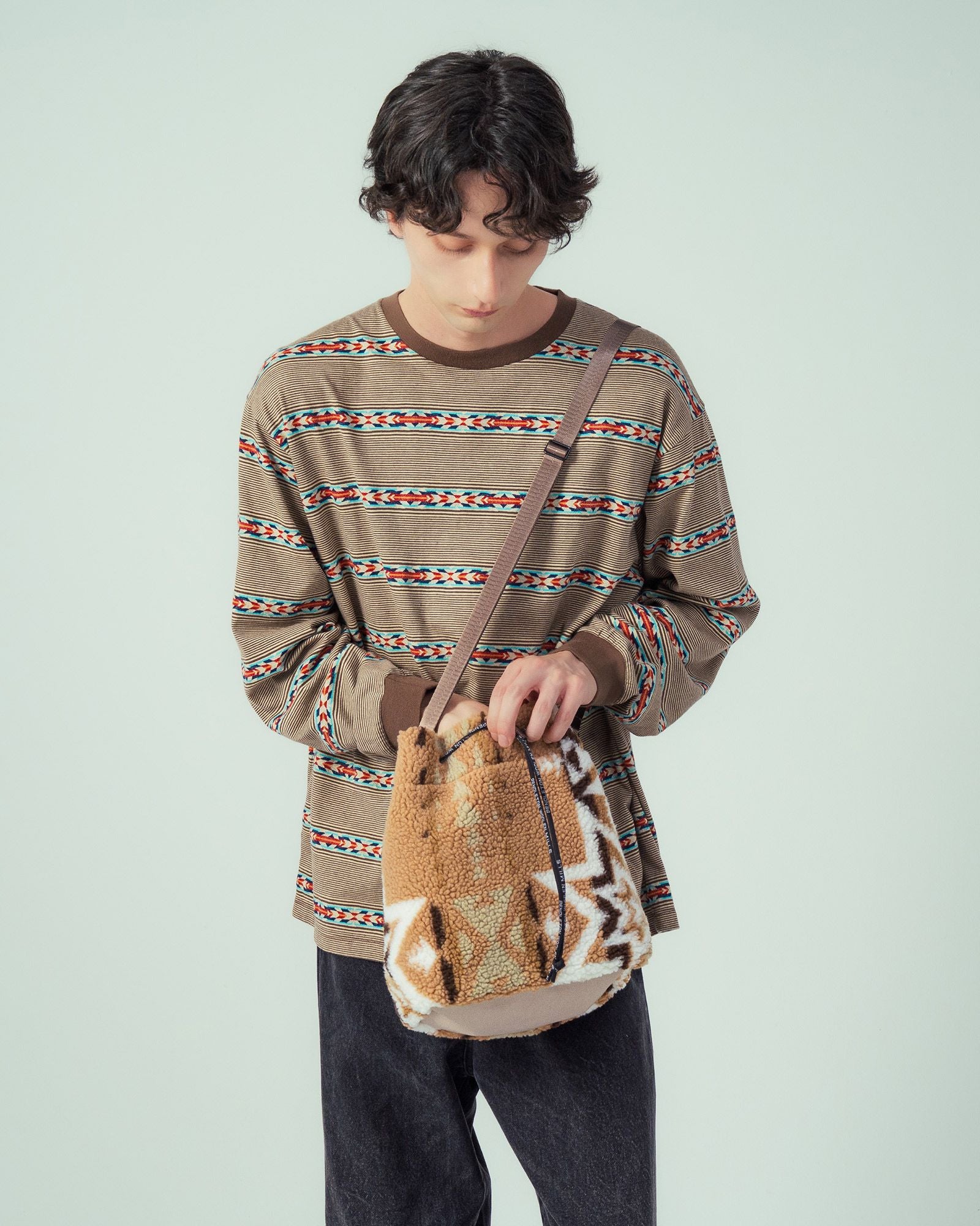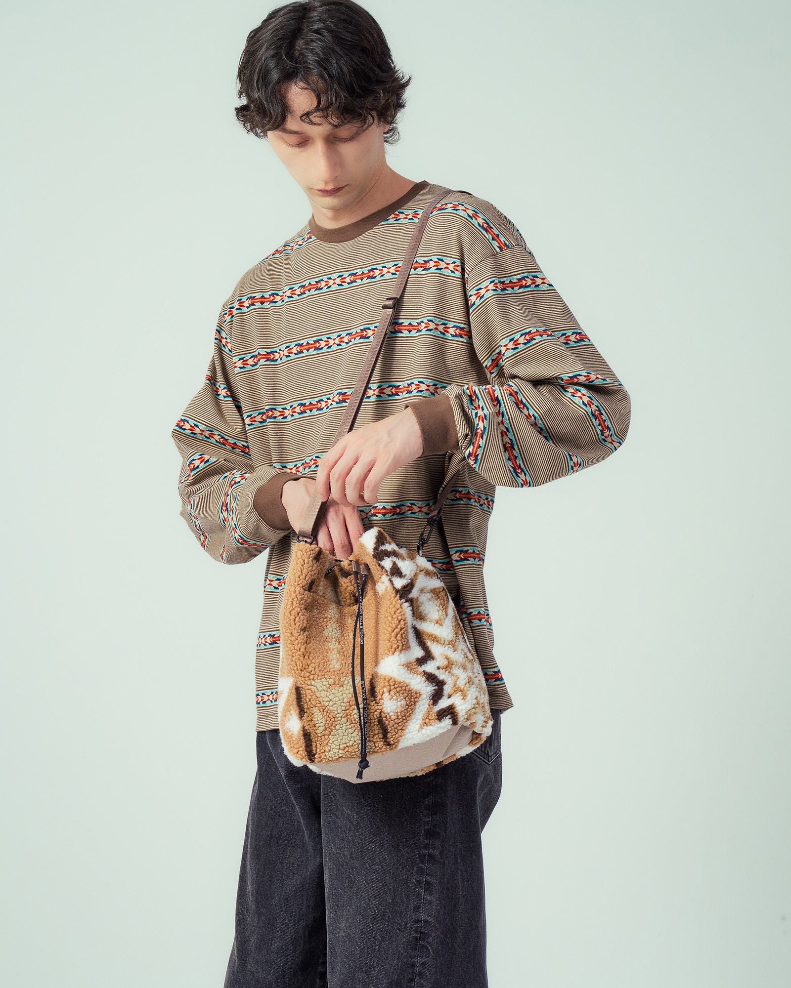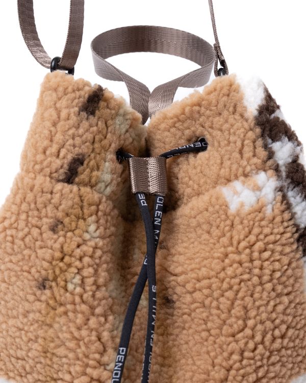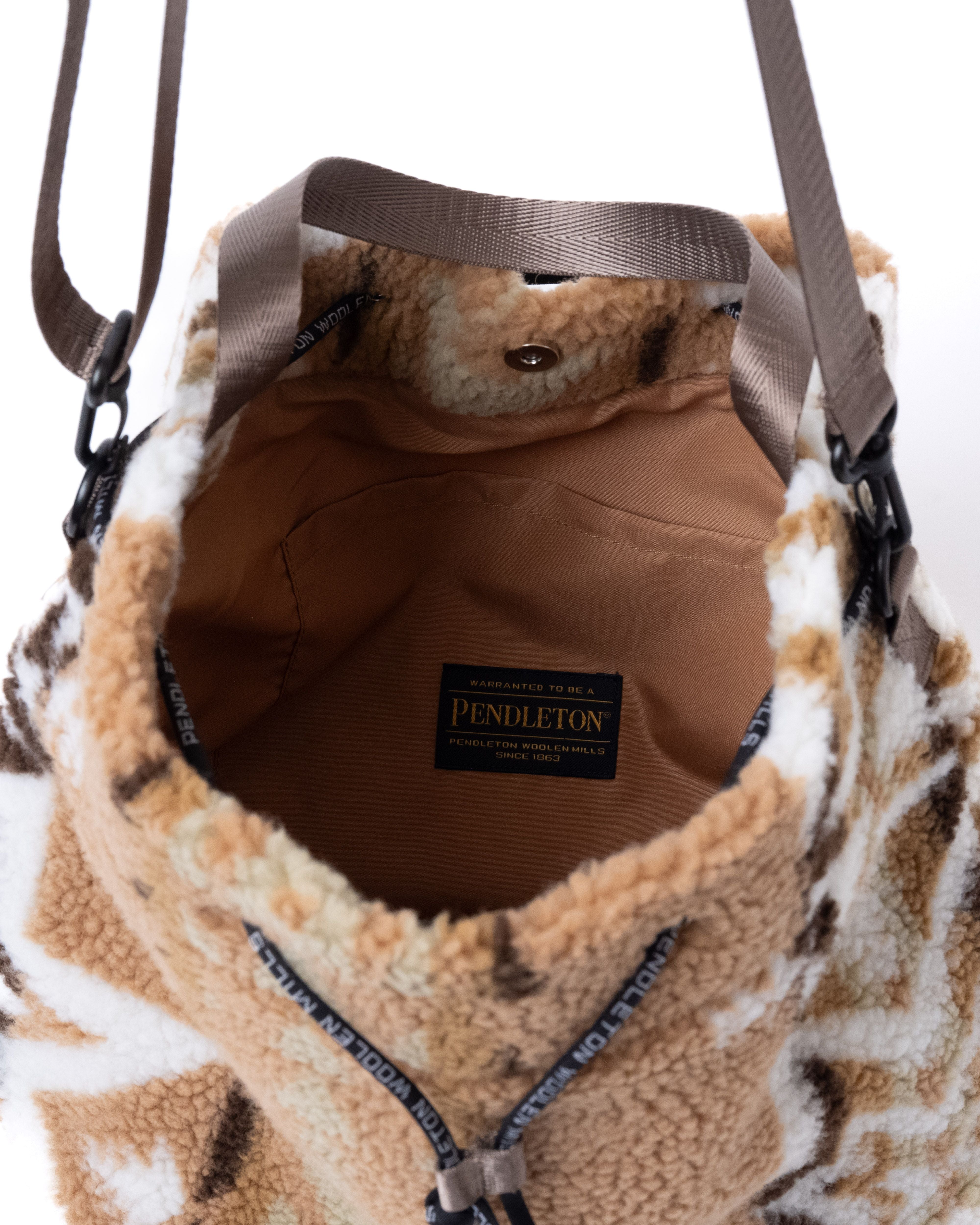 Pendletonの伝統的な柄を、温かみのあるボアフリースに落とし込んだドローストリングバッグ。起毛感のある表地が見た目にも冬らしいぬくもりをプラスします。巾着式の口元はドローストリングでしっかり閉じられるため、荷物の安心感と取り出しやすさを両立。