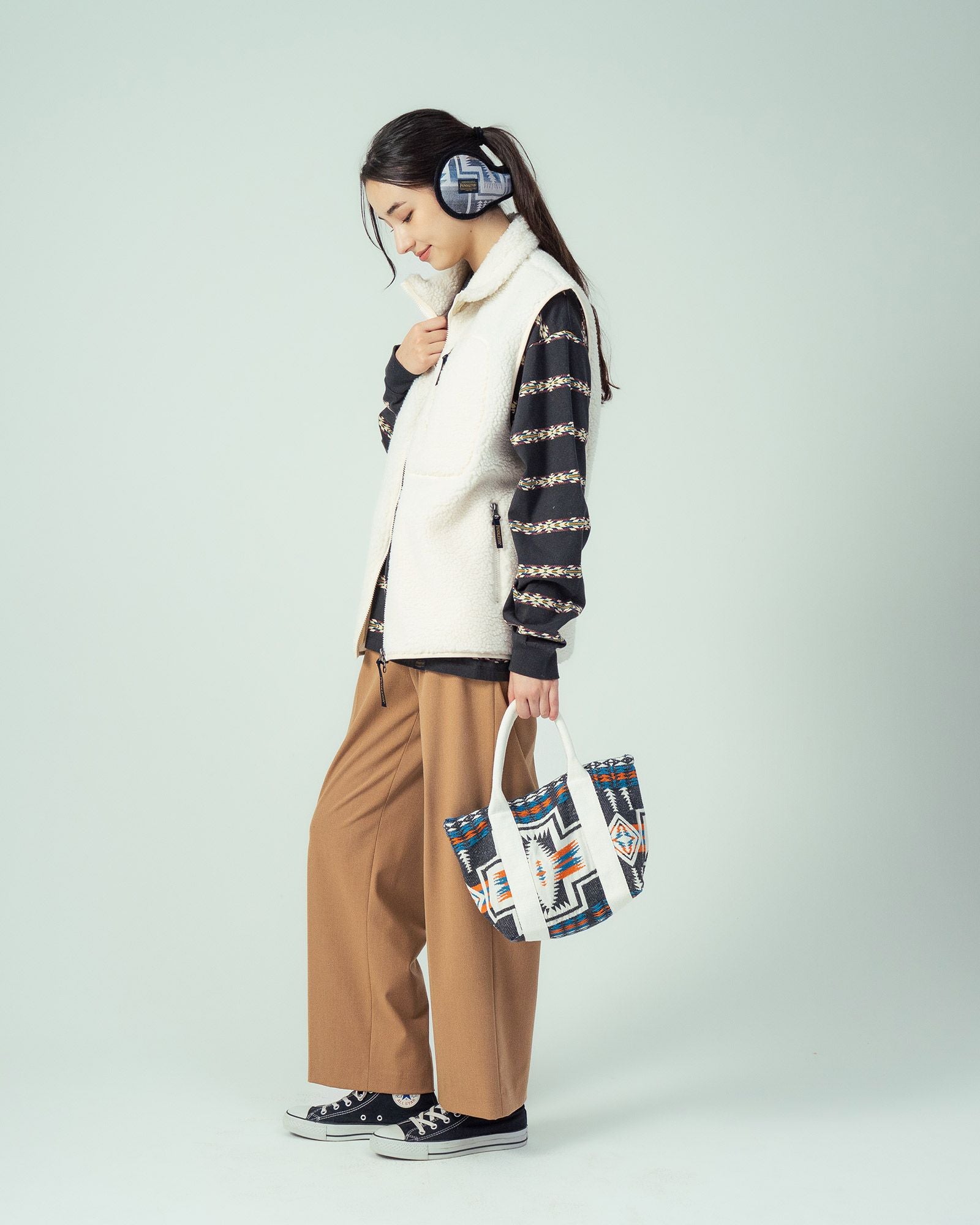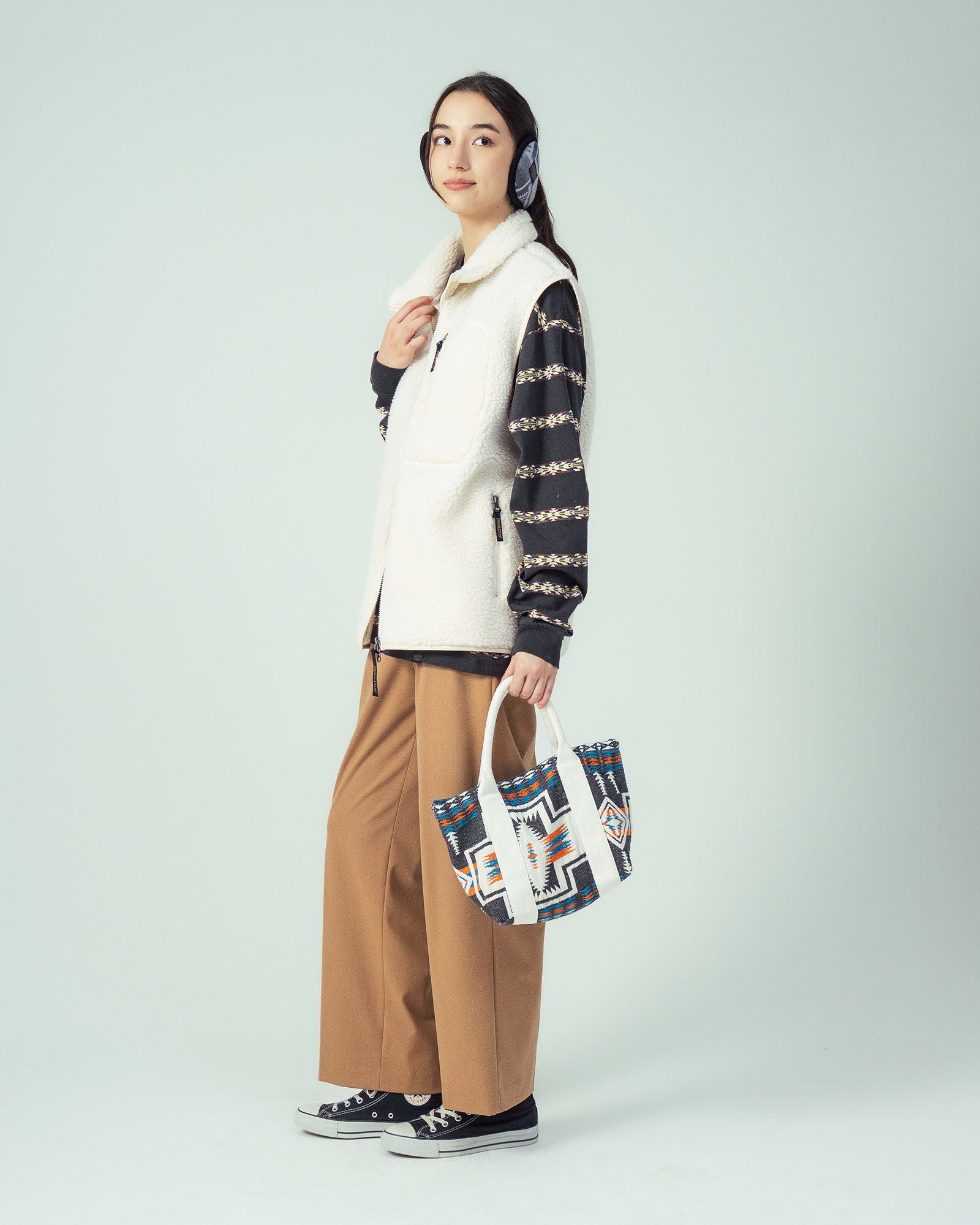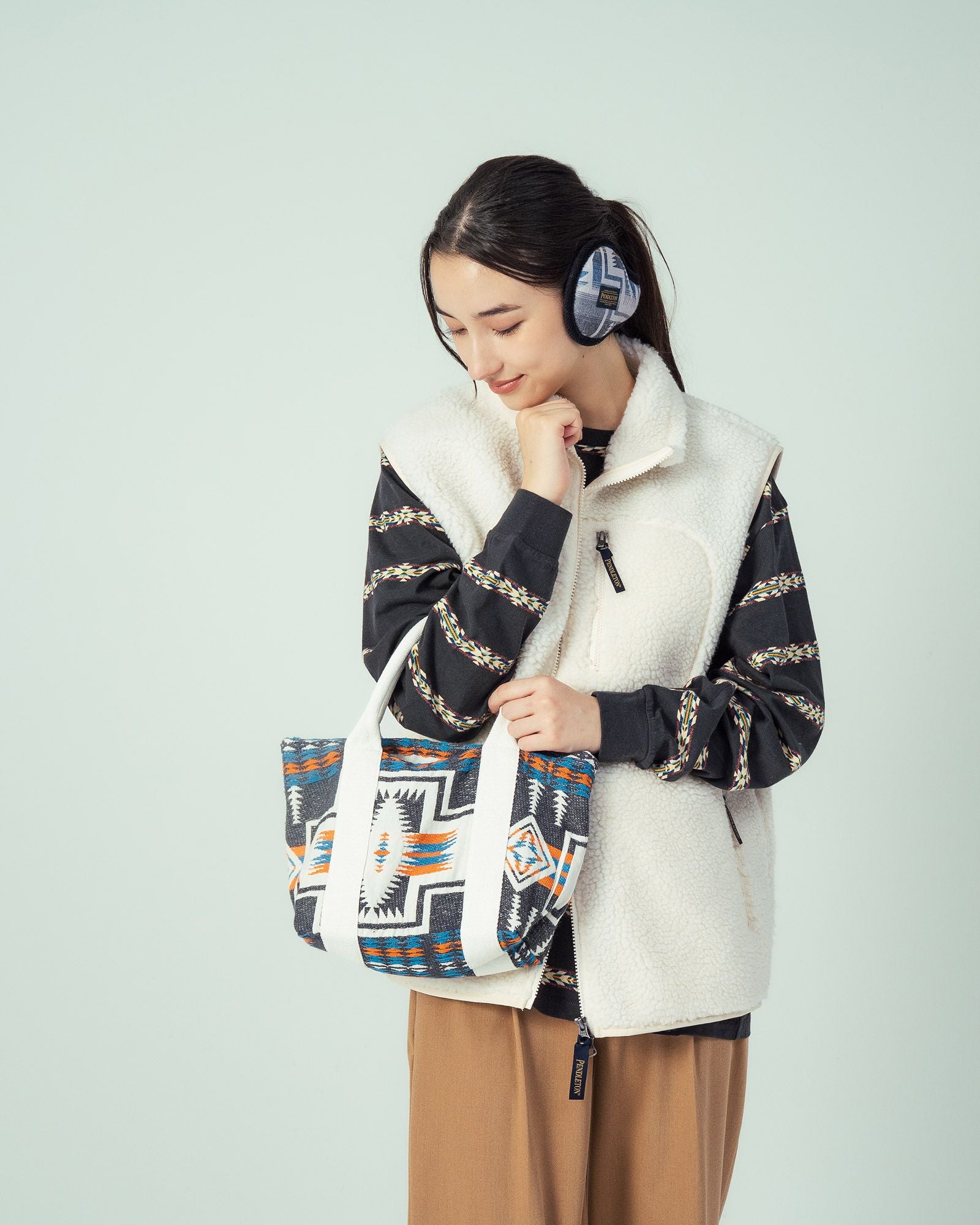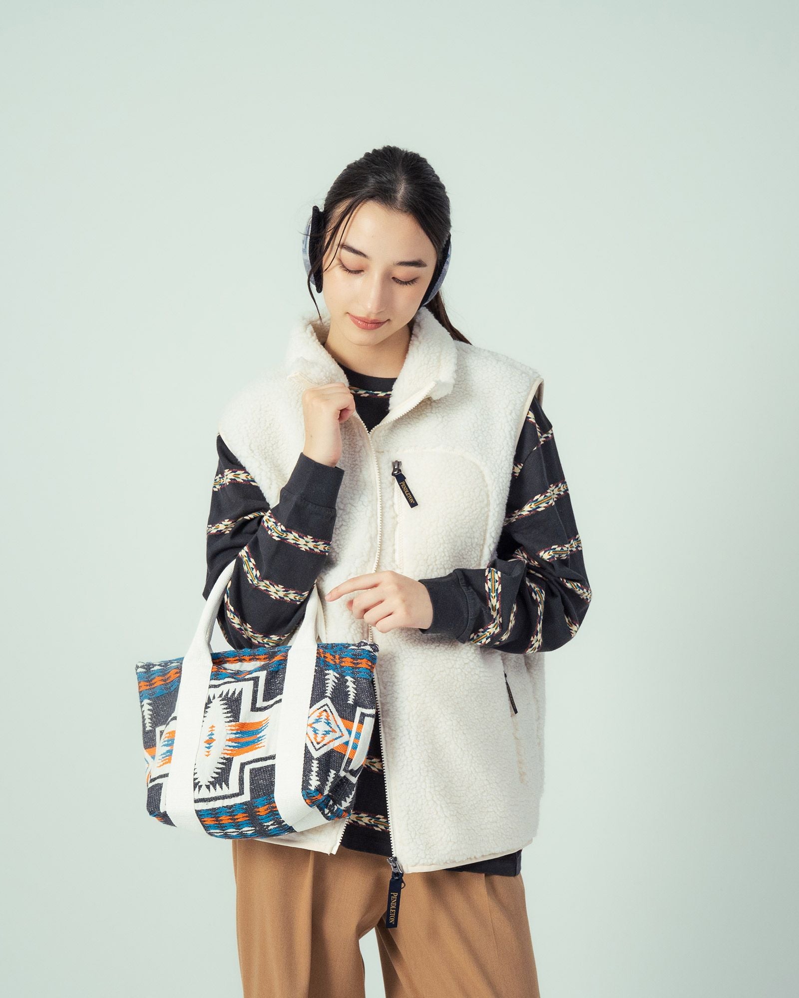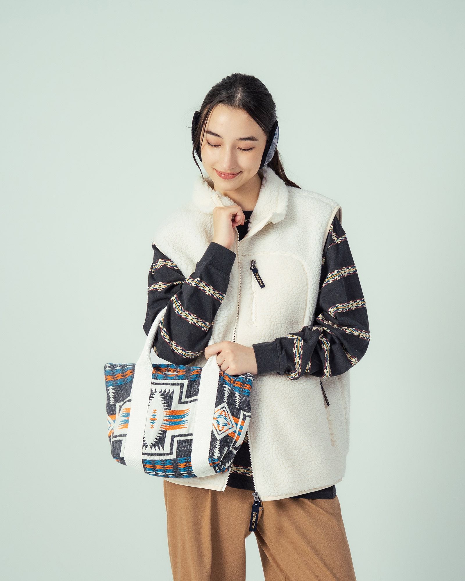 Pendletonの伝統的な柄を落とし込んだトートバッグ。ジャガードが織りなす色鮮やかな伝統柄が目を惹きます。程よいサイズ感で、デイリーユースから週末のお出かけまで幅広く活躍。鮮やかなテクスチャーがコーディネートにアクセントを加え、毎日の装いを格上げします。