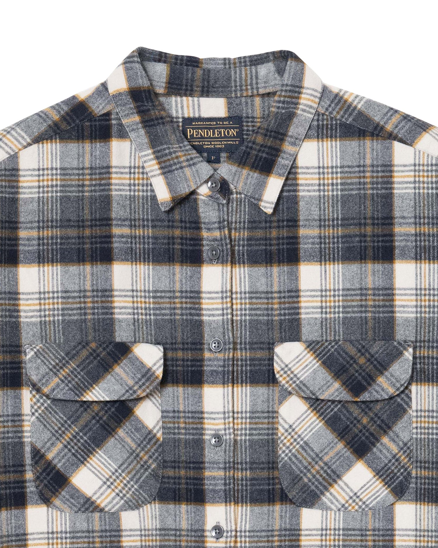 シャツカラーやボタンなどの特徴を持ちながらも、女性らしいシルエットを兼ね備えています。シンプルなラインが、上品でミニマルな印象を与えます。