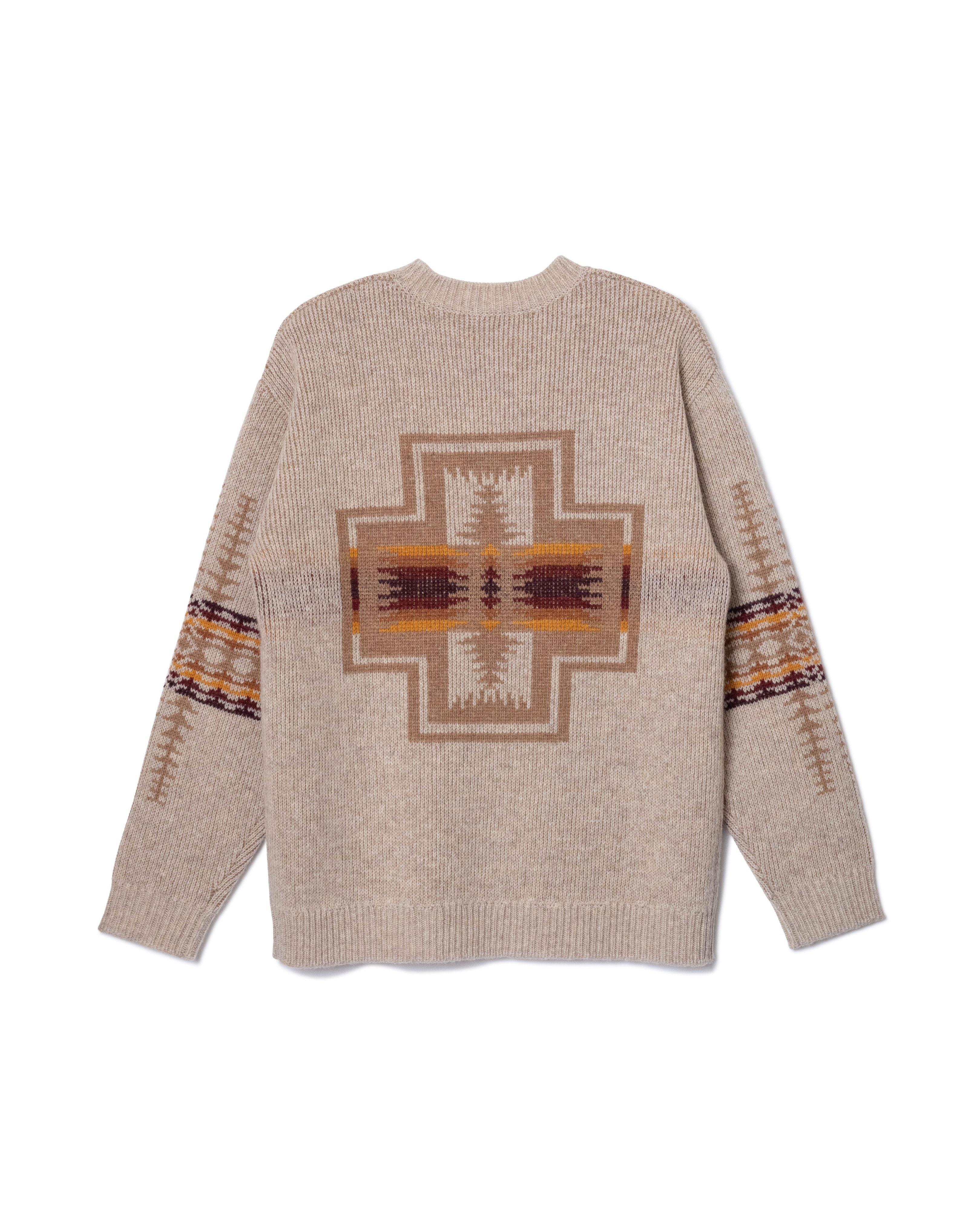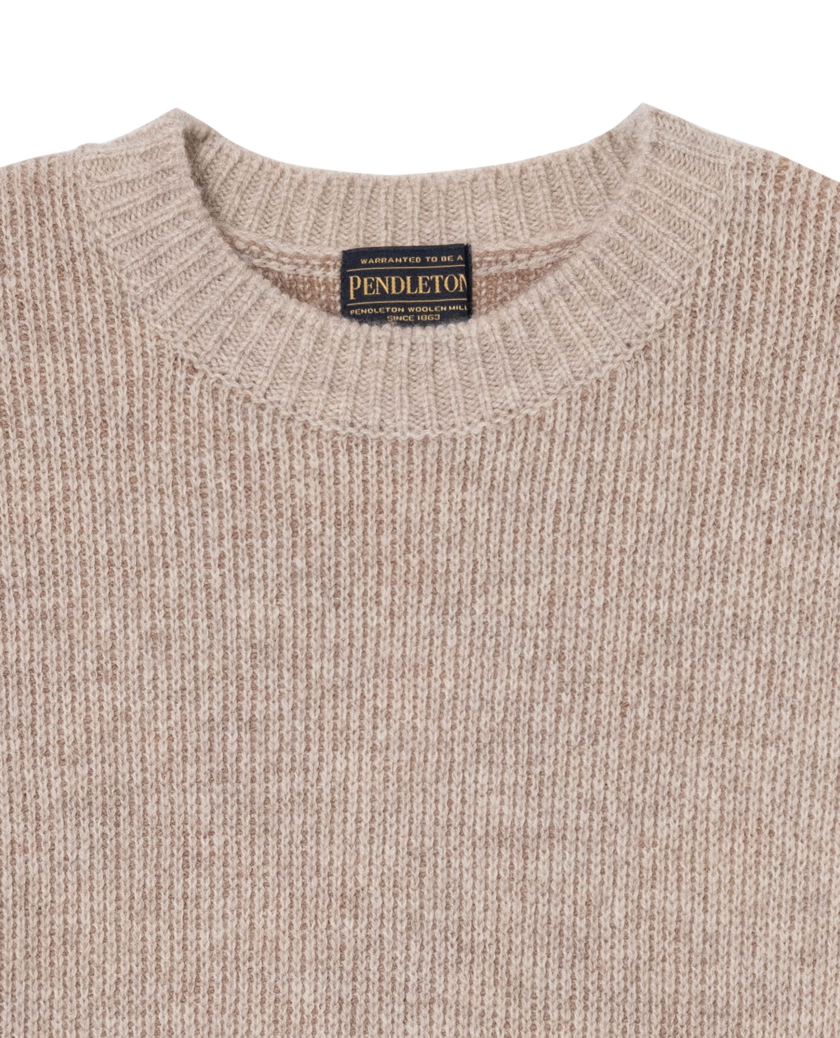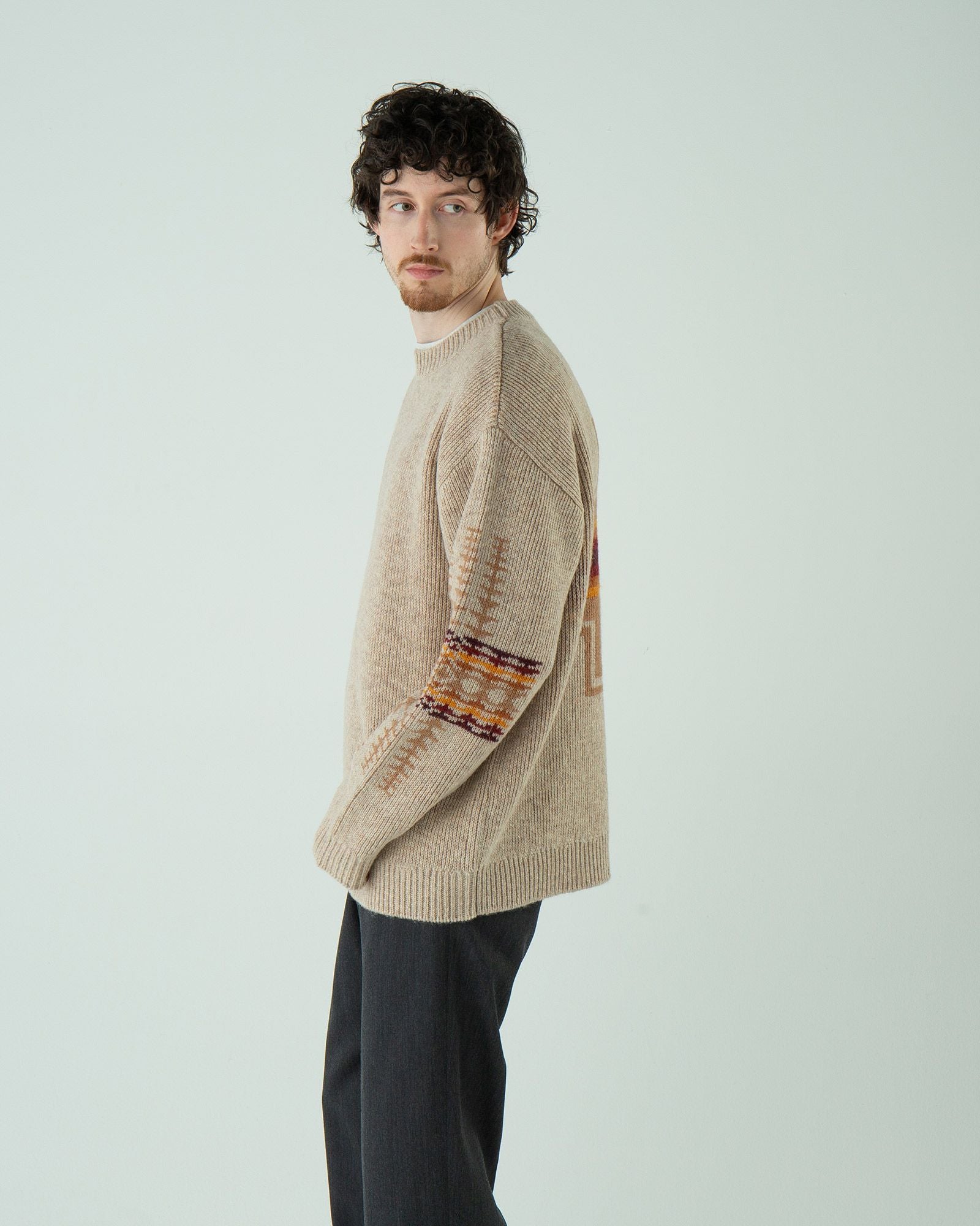ベーシックな丸首(クルーネック)デザインは、インナーとの相性も抜群。