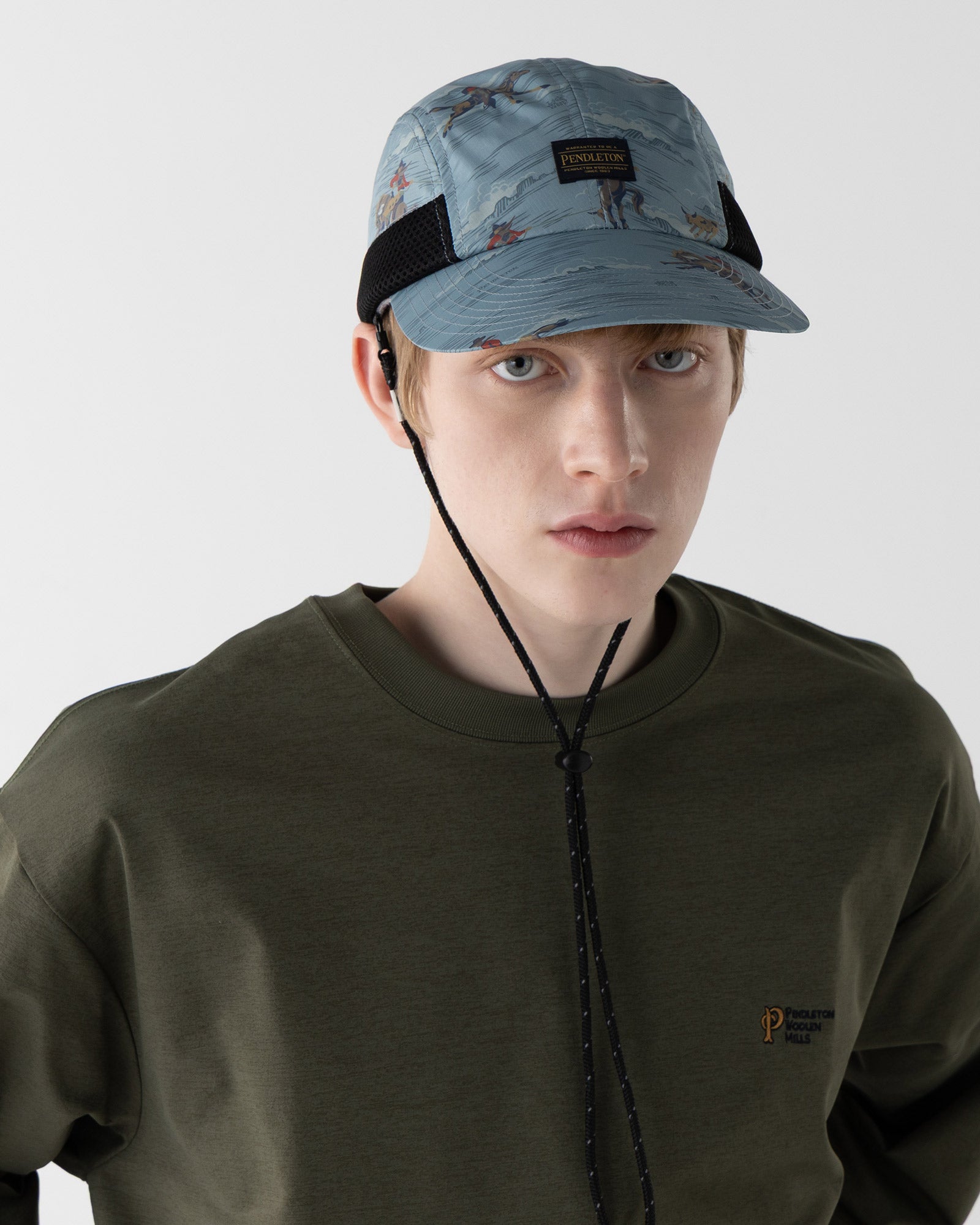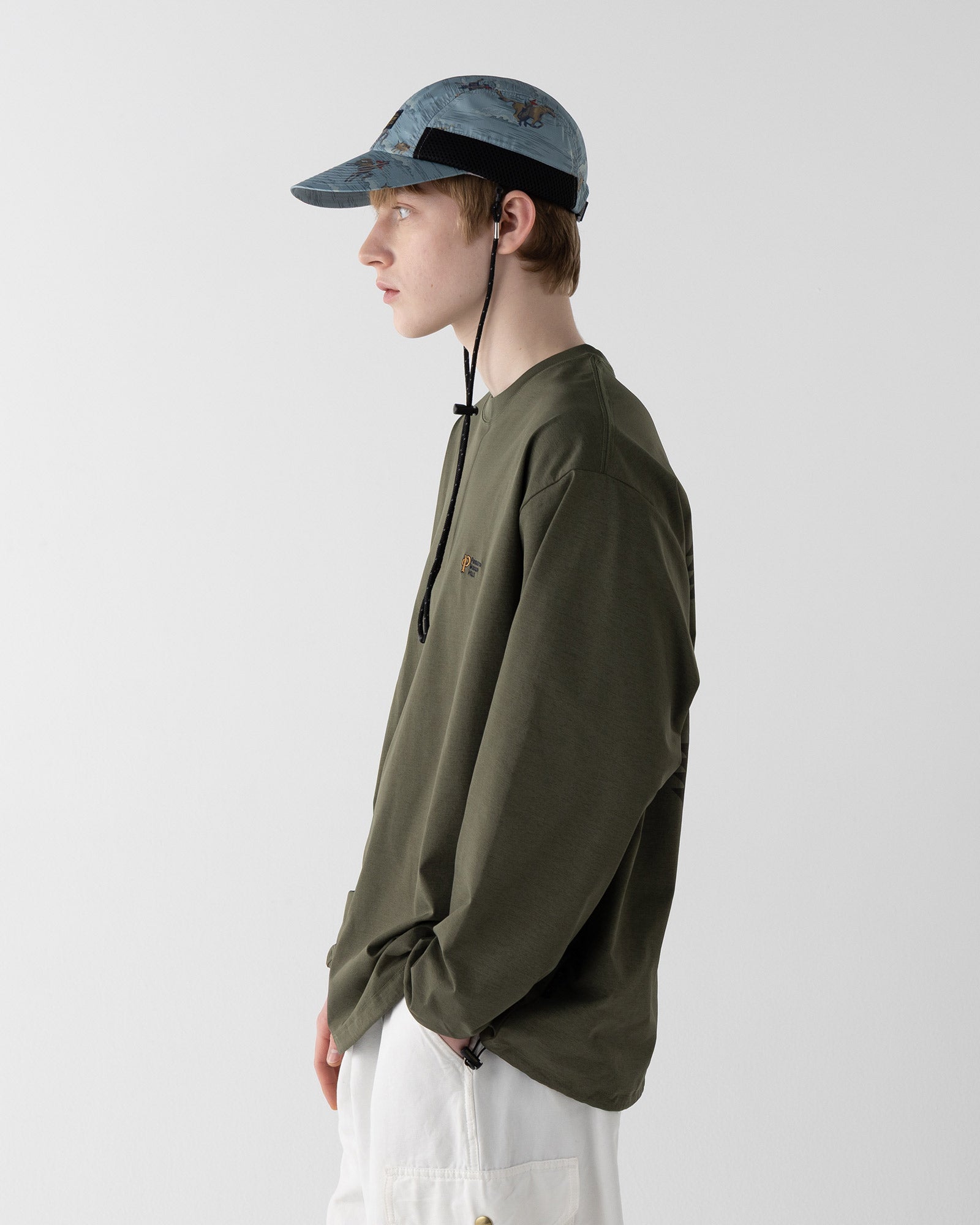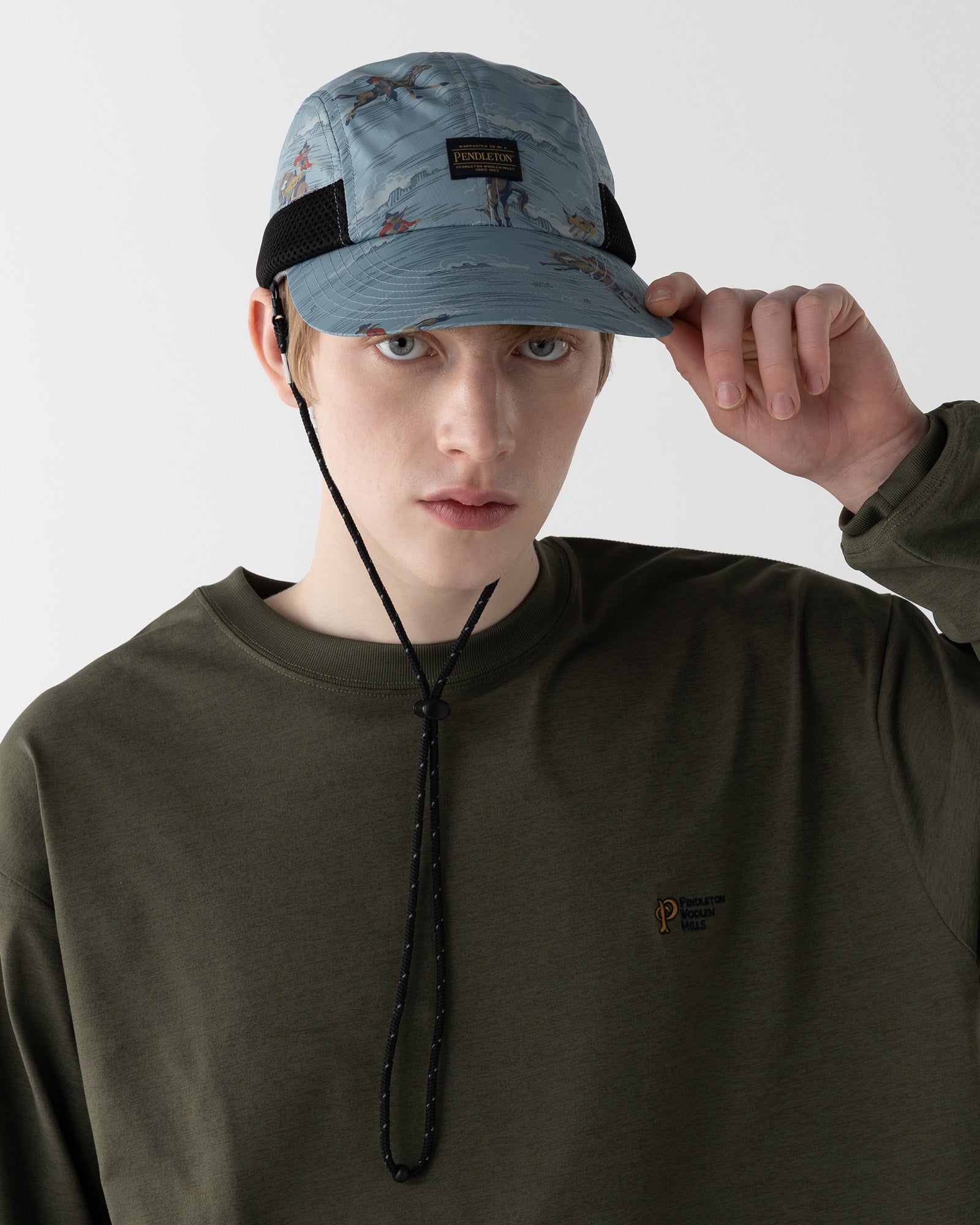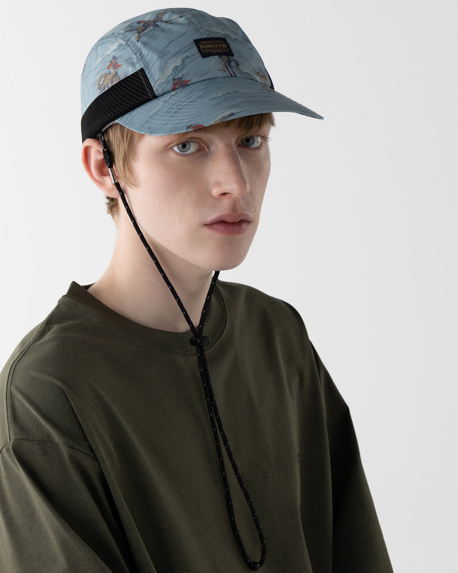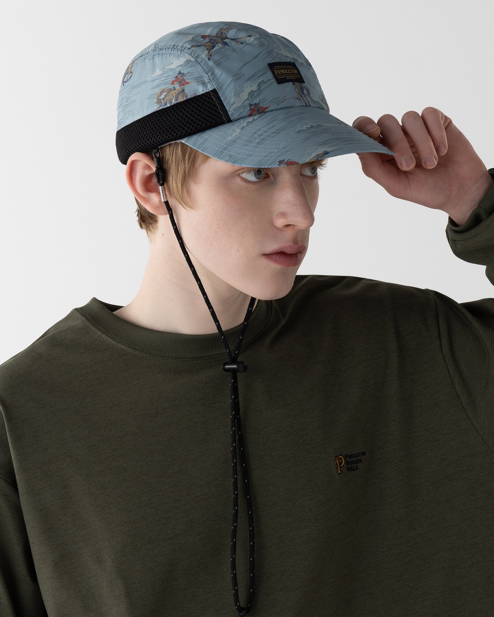 です。帽子部分のサイドにメッシュ素材を配することで、熱がこもりにくく、通気性を