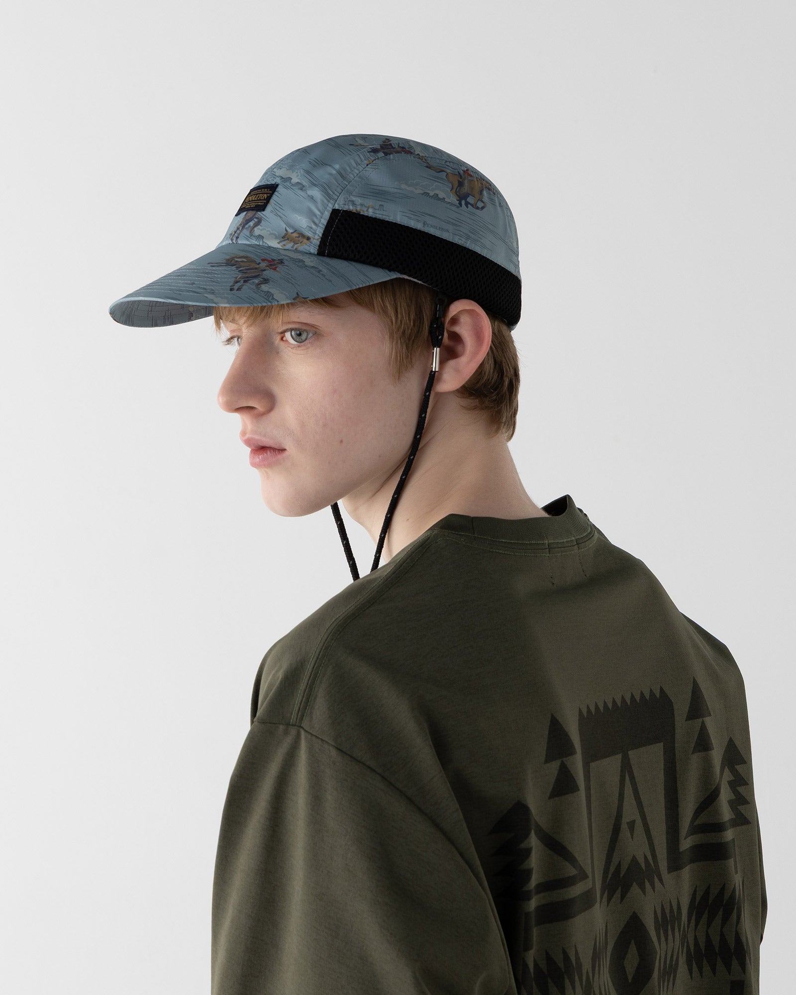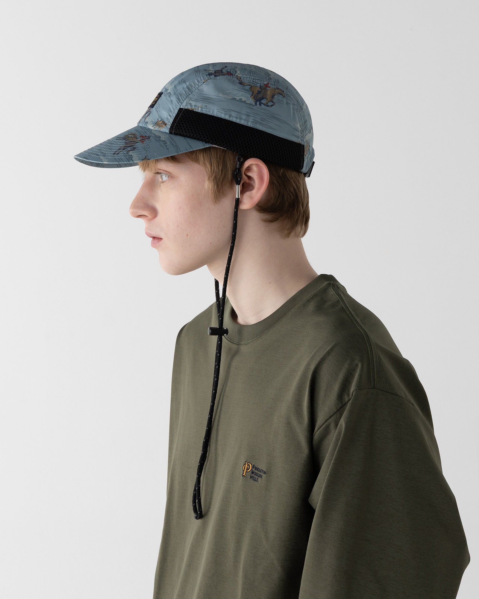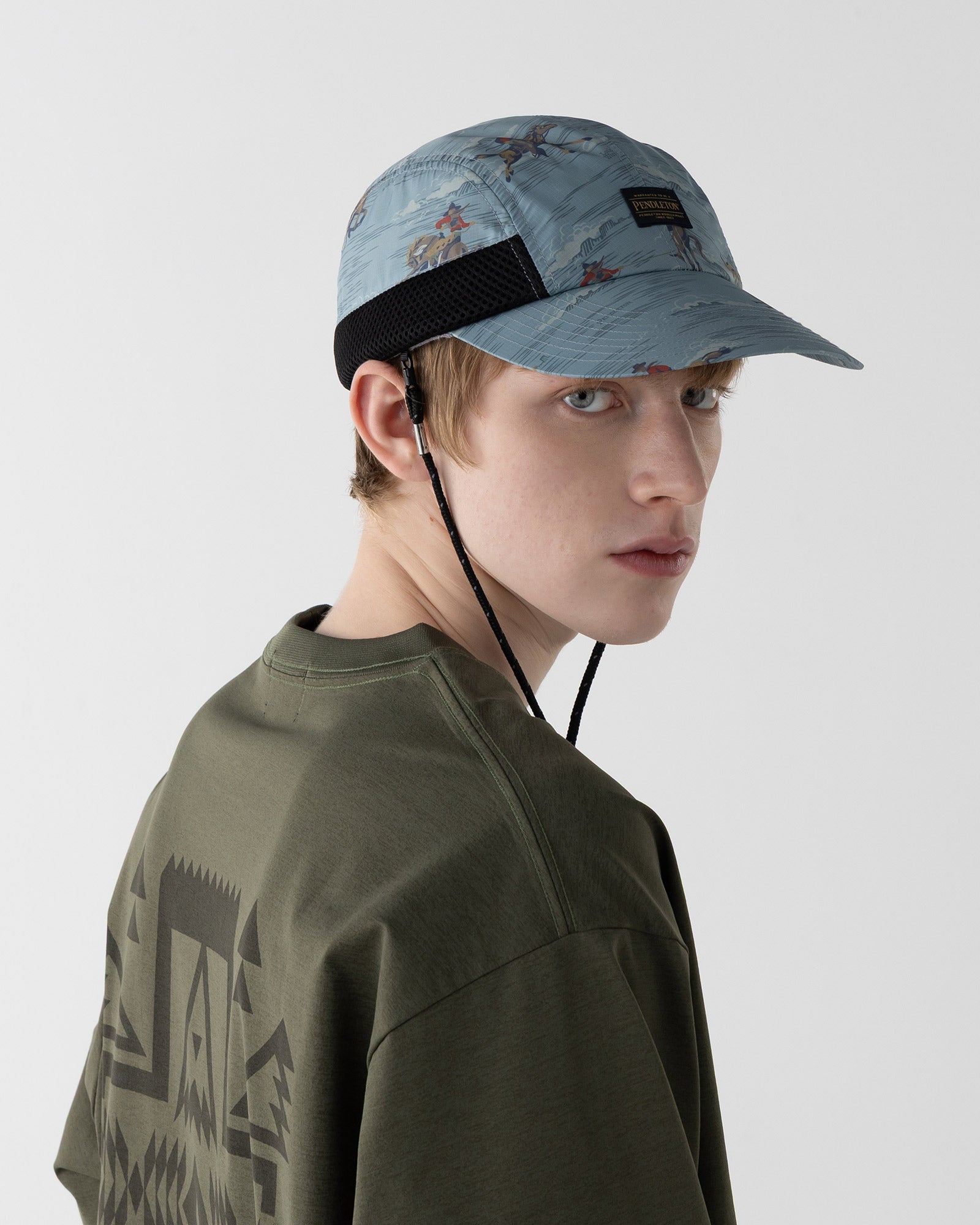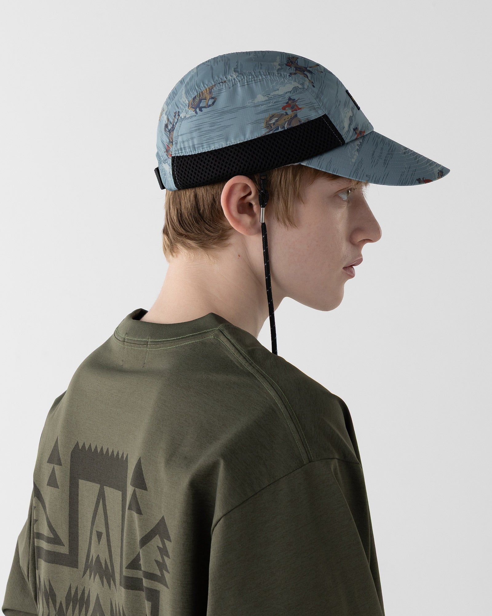 ペット素材(再生ポリエステル)を使用したリップストップ生地にプリントしたキャップ