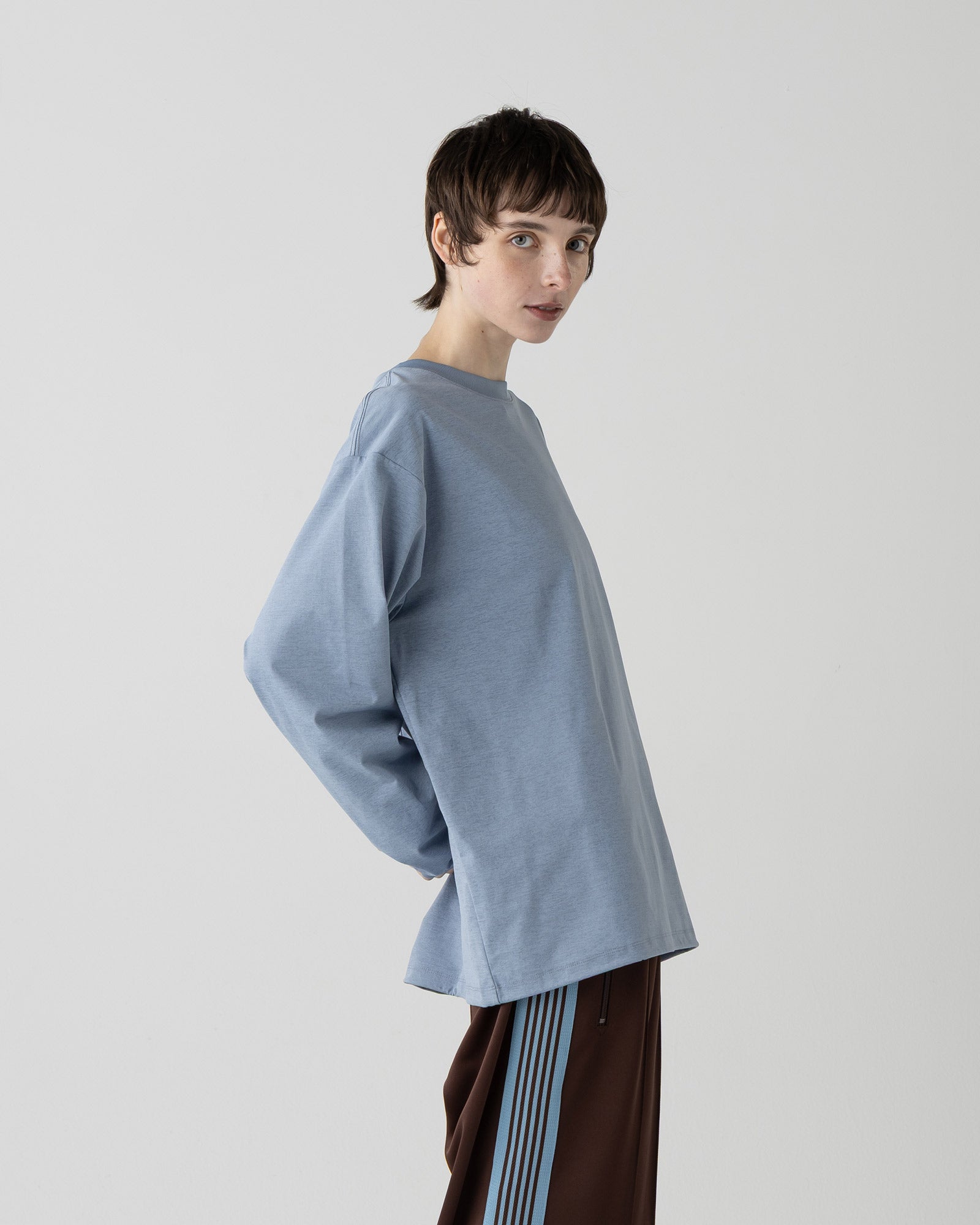 着用シーンを選ばず、ワードローブに1枚あると重宝する万能ロングスリーブです。