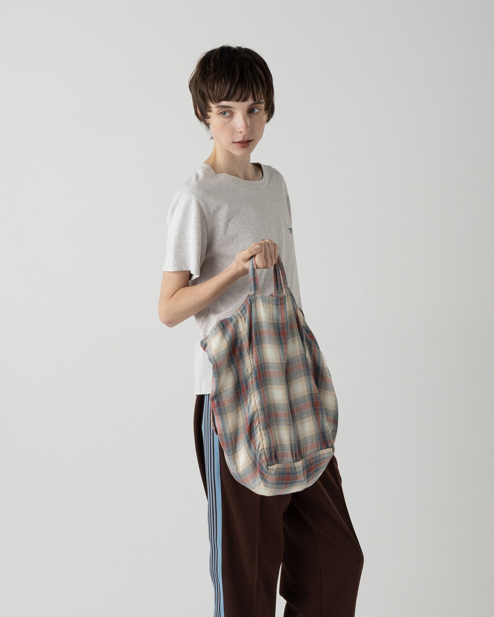 ・パッチワークチェックがアクセントになり、シンプルな着こなしに華を添えます。